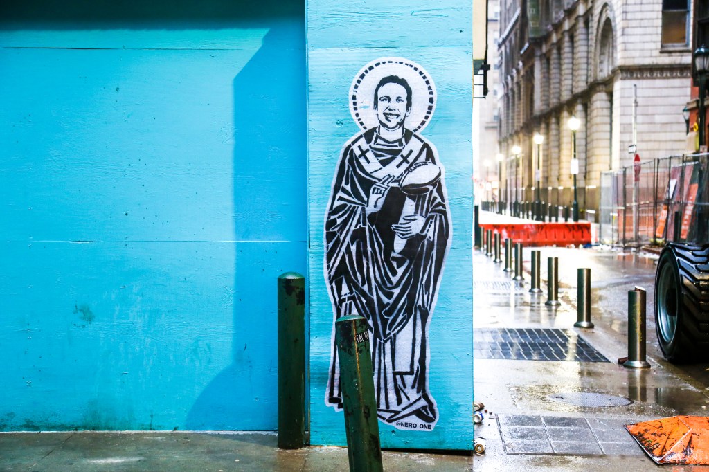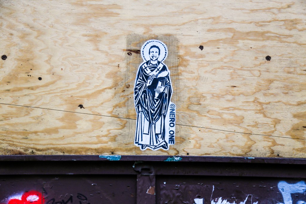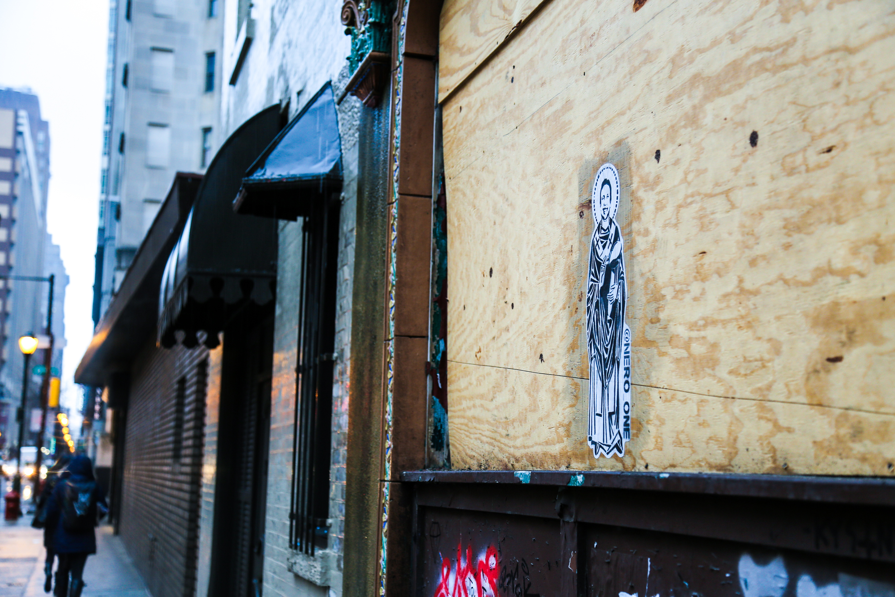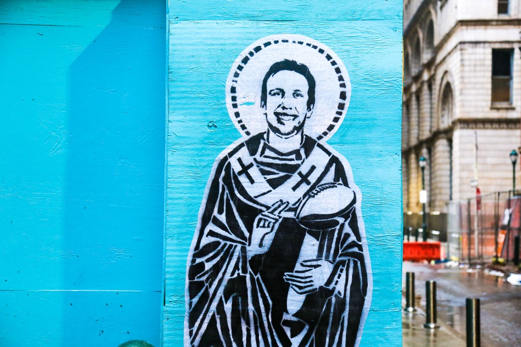 Absolutely LOVE these new wheatpastes that popped up around town last night by Philly-based street artist Nero. The new work pays homage to Nick Foles by making him the saint that he is (metaphorically speaking, of course)Â after leading the Philadelphia Eagles to our first-ever Super Bowl victory. Philly Special, and all!
