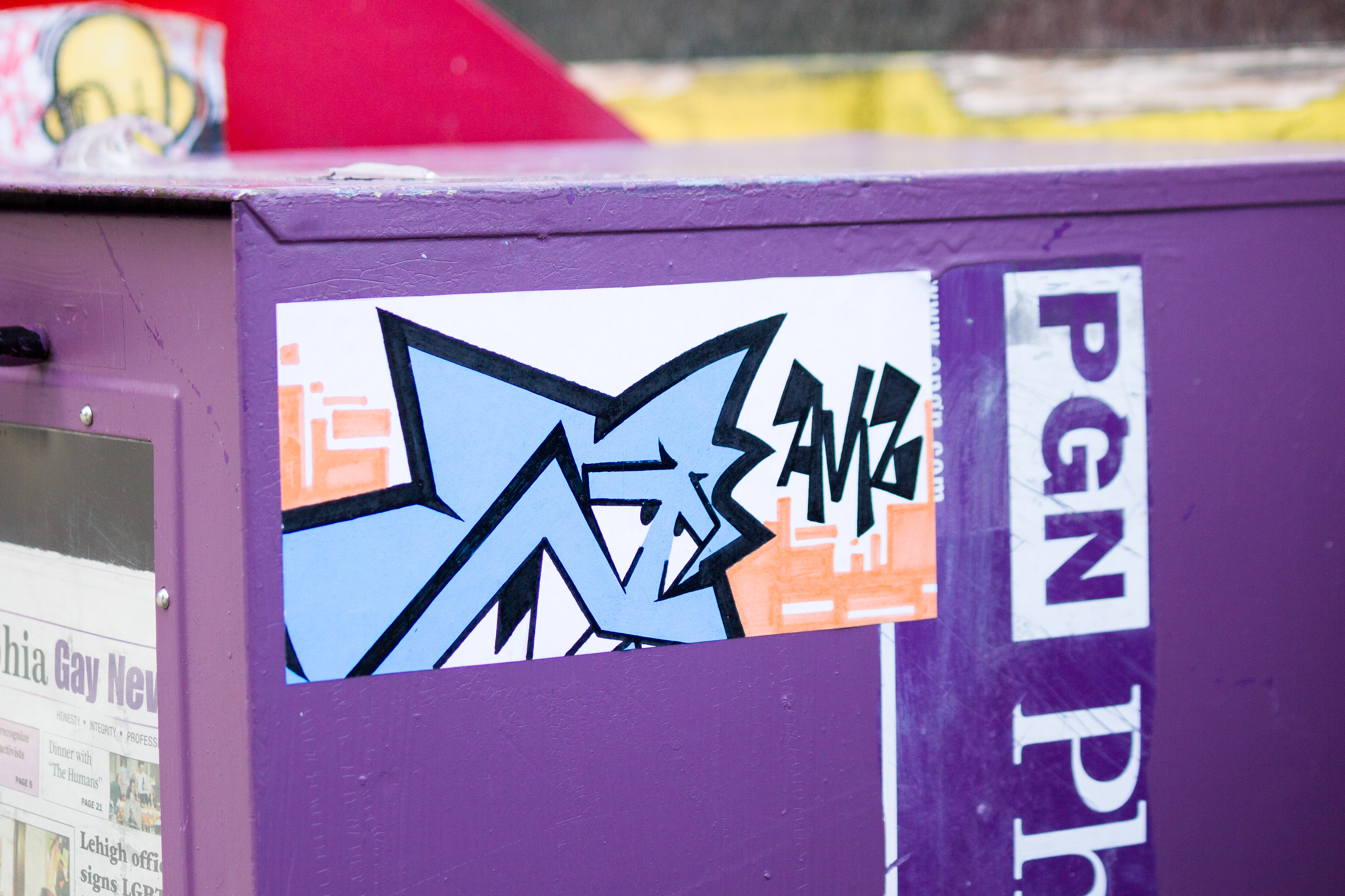 AV: When I first started, I was just thinking “I need to have my own character!” So I started creating a bunch of random characters. But Philly has a distinct style that a lot of sticker artists had back in the day – it’s not something that you can just pull off Google Images. There’s a certain aesthetic, so I tried to follow that.
