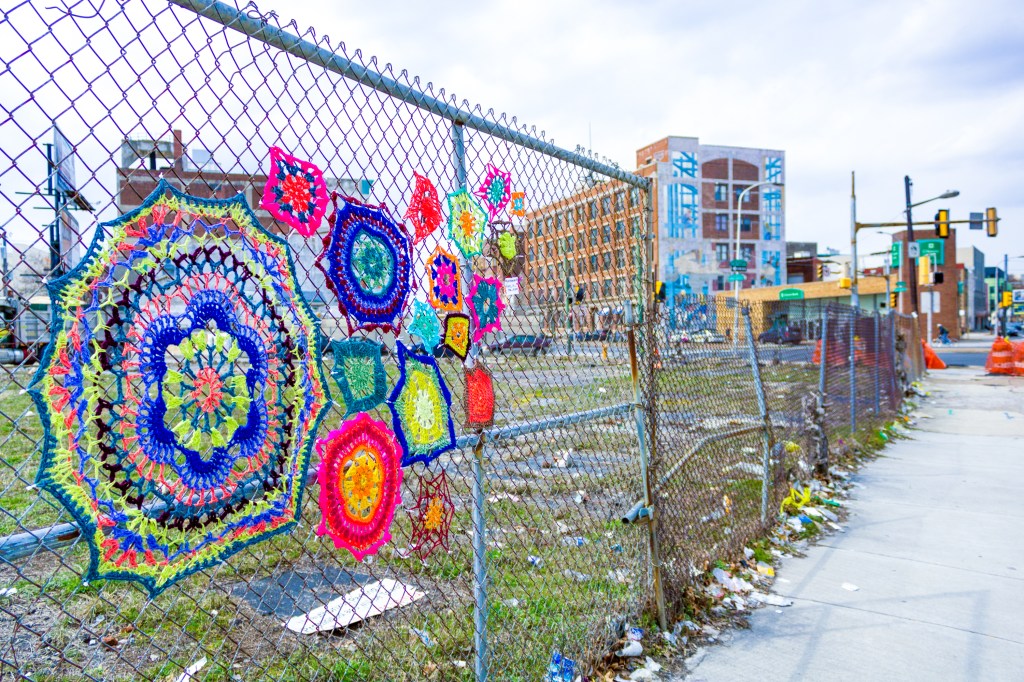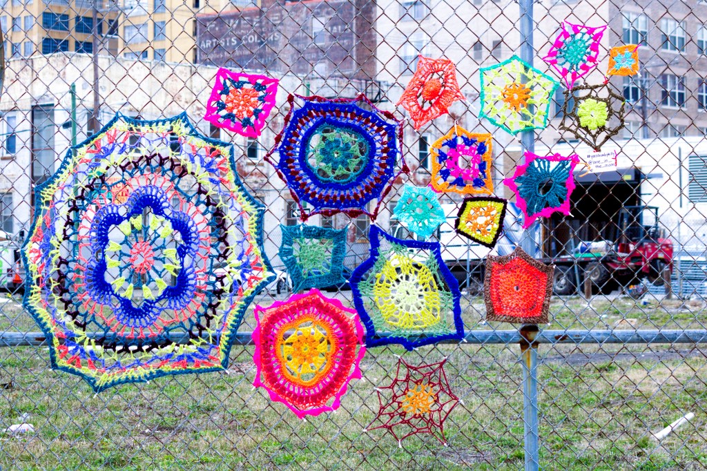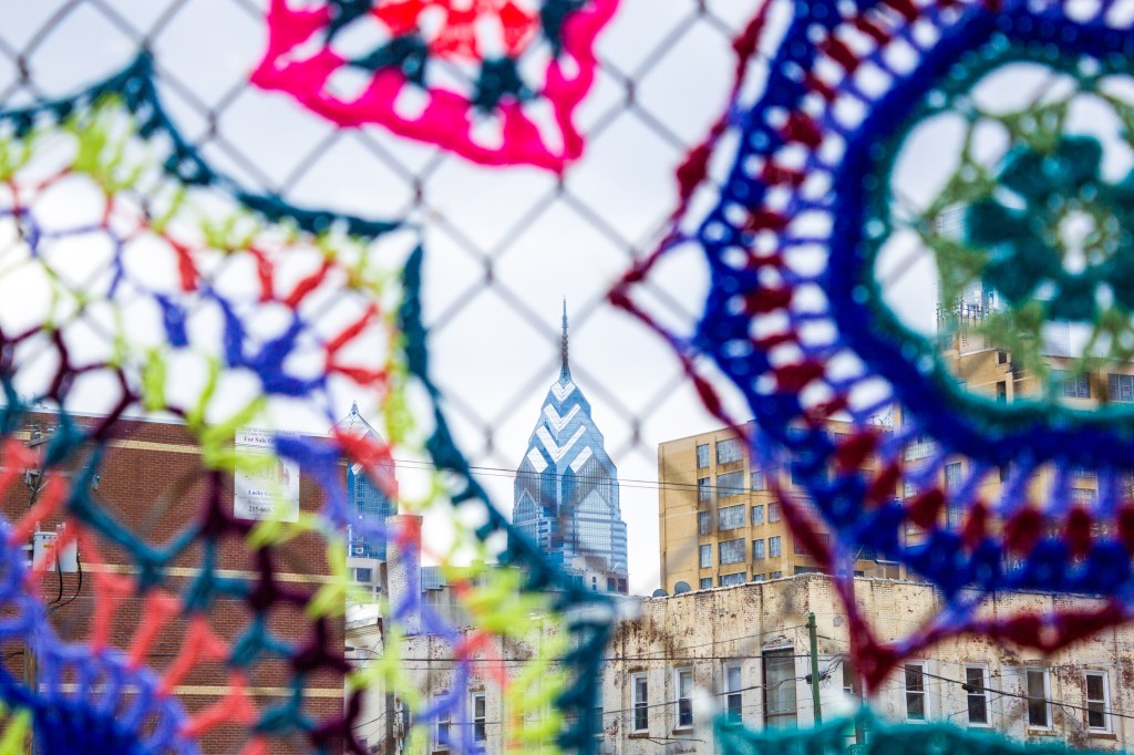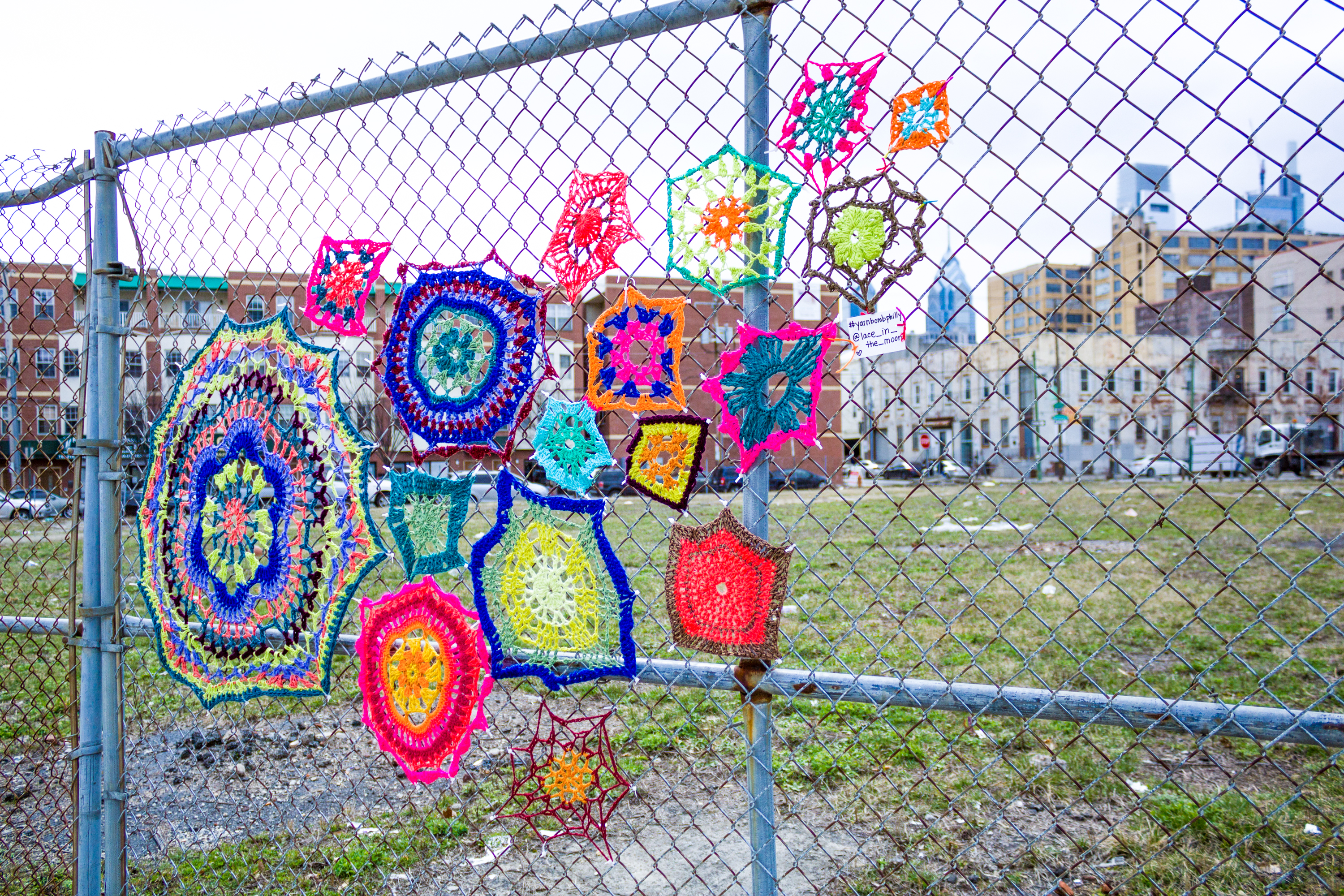 Awesome new yarnbomb installation yesterday by Nicole Nikolich (aka @lace_in_the_moon) at the intersection of 12th and Spring Garden streets!