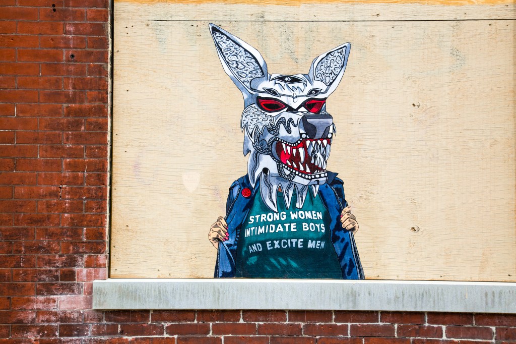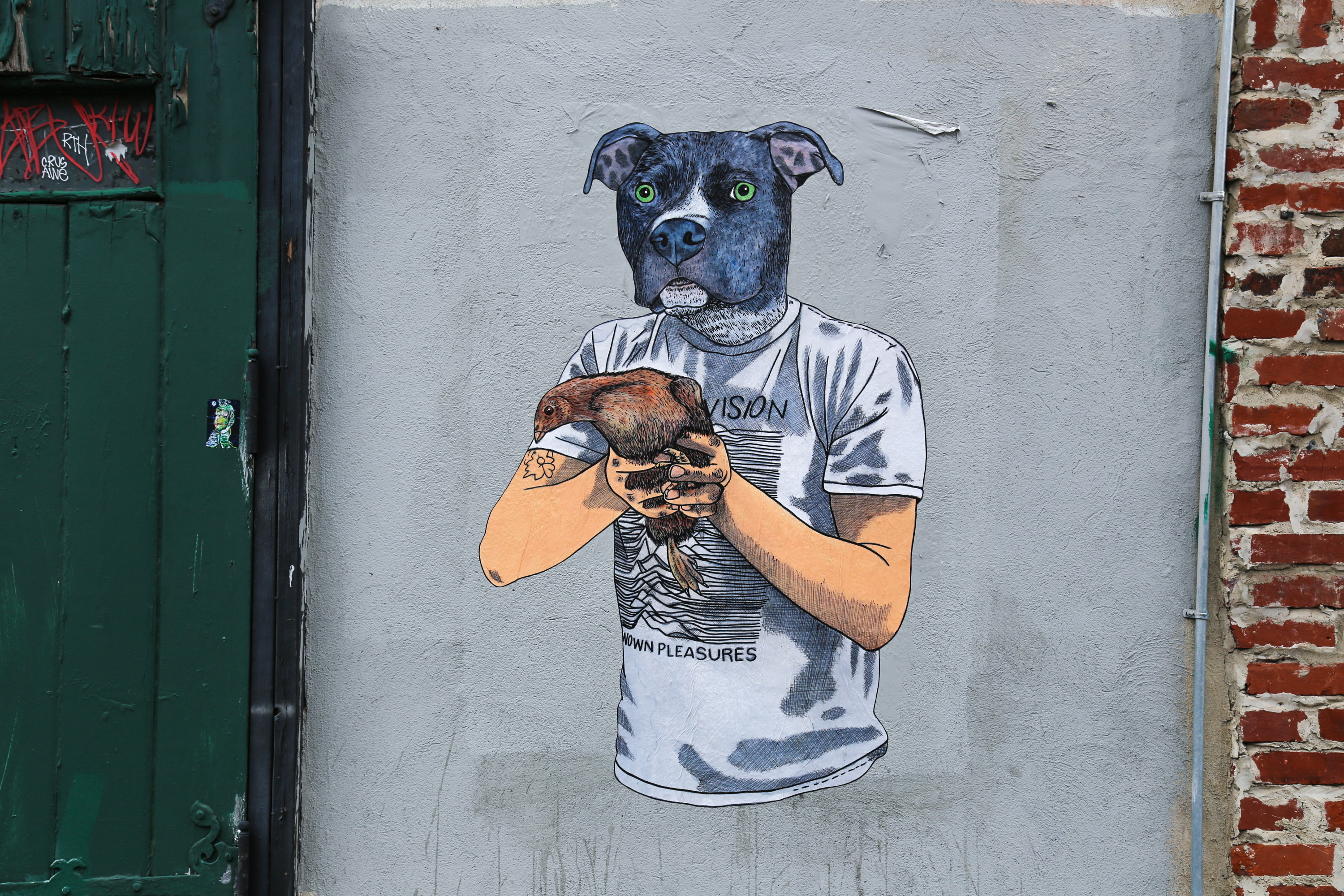 Sean has been coming through Philly to install his signature humans-wearing-an-animal-mask wheatpastes around the city for at least a few years now. His artist statement reads: “Brown boy representing the duality of both Latin and American culture and experiences through masks that can either misconceive or stereotype perceptions.”