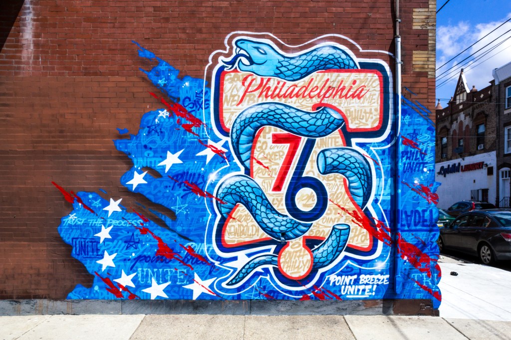 SD: Tell us about the design! I’m seeing it everywhere now, not just murals. Did you create it with the Sixers?