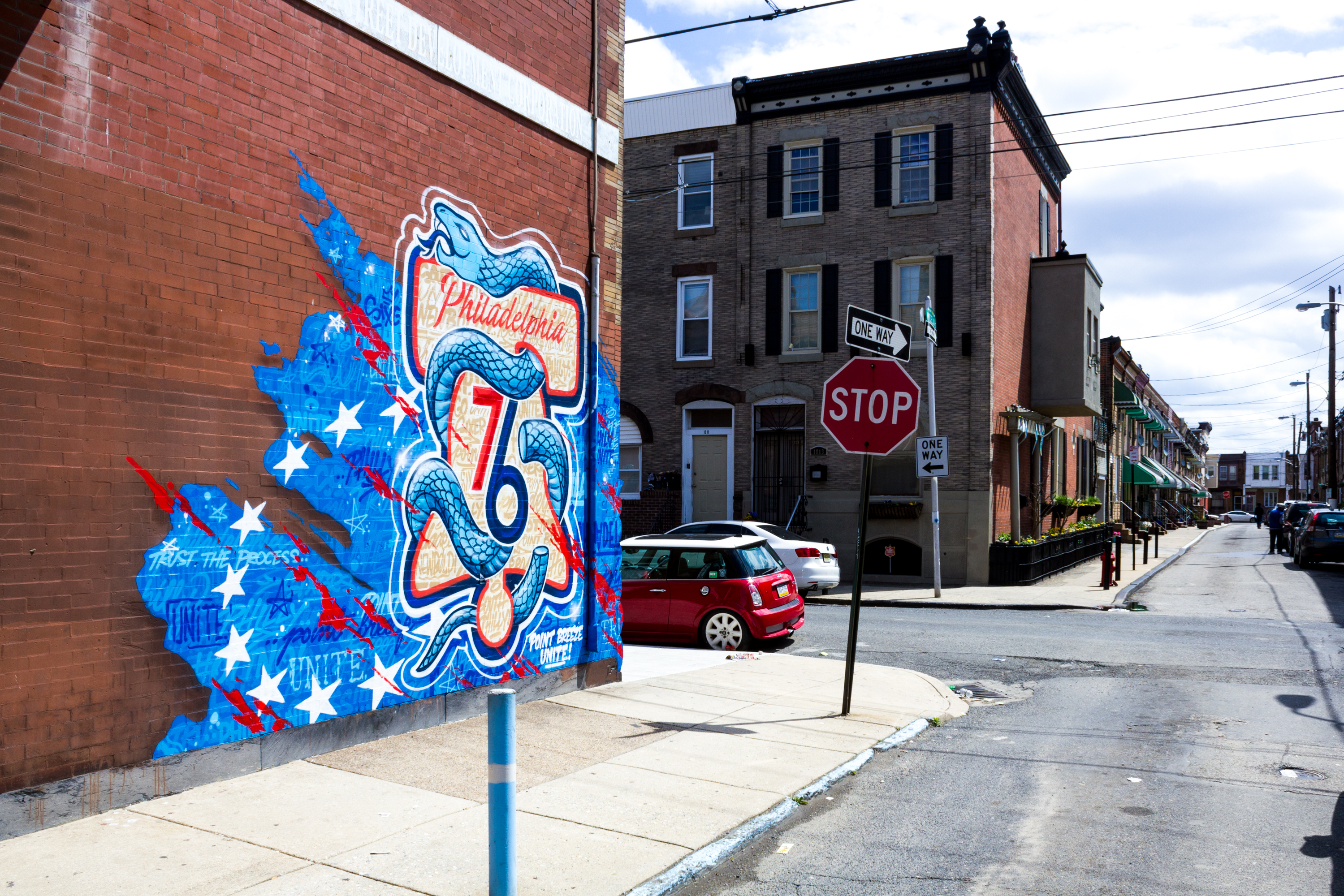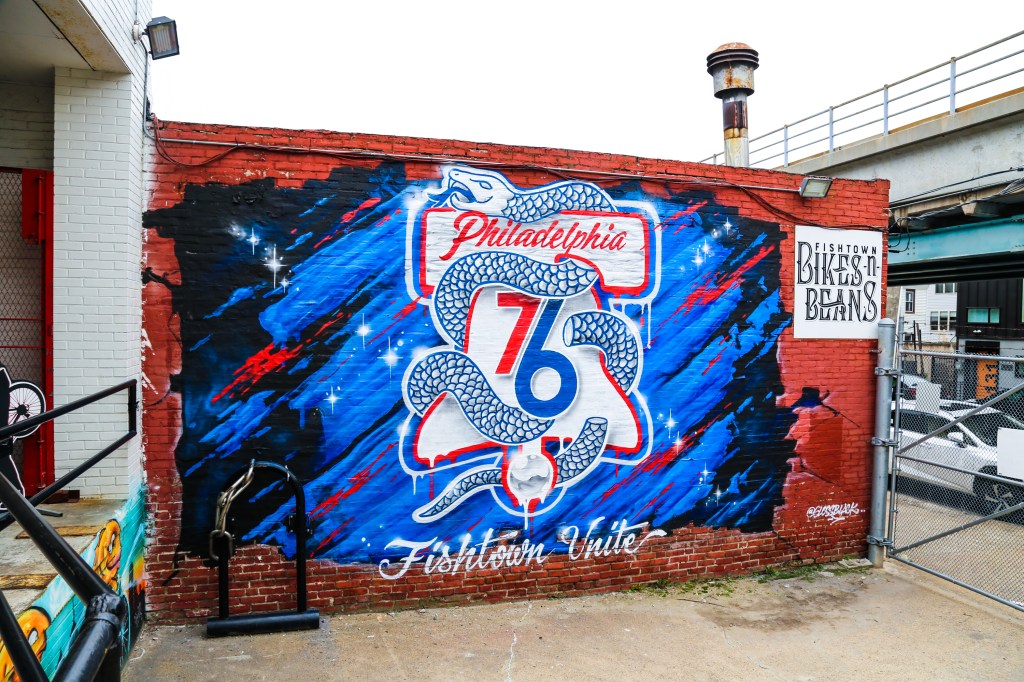 Now I know the Sixers are playing a make-or-break game tonight (so who knows where we’ll be by the time you read this,) but what I also know is that Philly has been LOVING these murals and posting about them all over Instagram. And in fact, the way they have been created makes them look and feel so much like neighborhood/Philly pride murals that I think they could easily last and be relevant between Sixers’ seasons or otherwise.