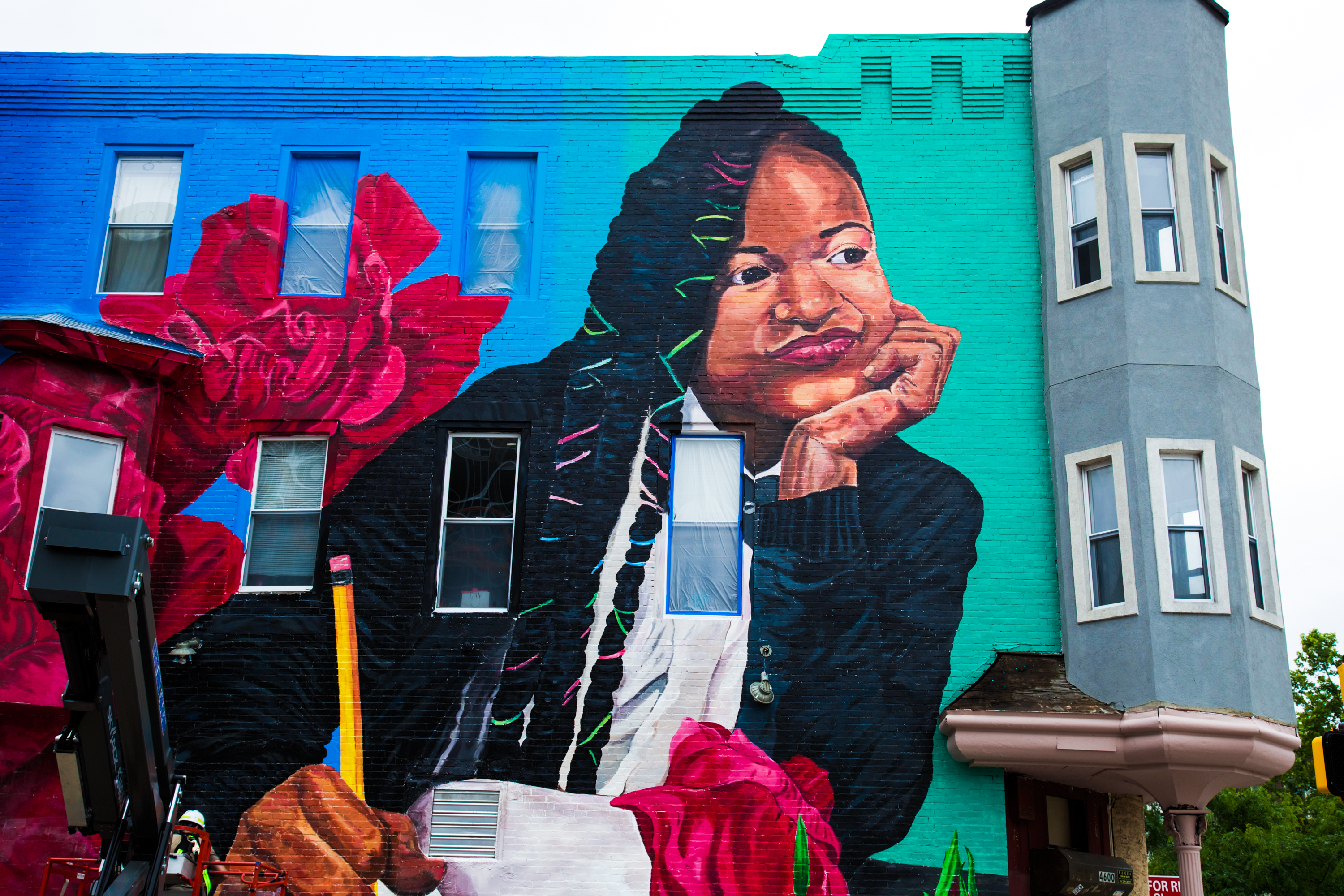 “Your future is unwritten. Finished up this mural in West Philly over the weekend. [It’s a] portrait of my neighbor, Diamond, who is a good student and athlete with a bright future. There was a school across the street, and it was demolished to make way for University of the Sciences dorms and shops.”