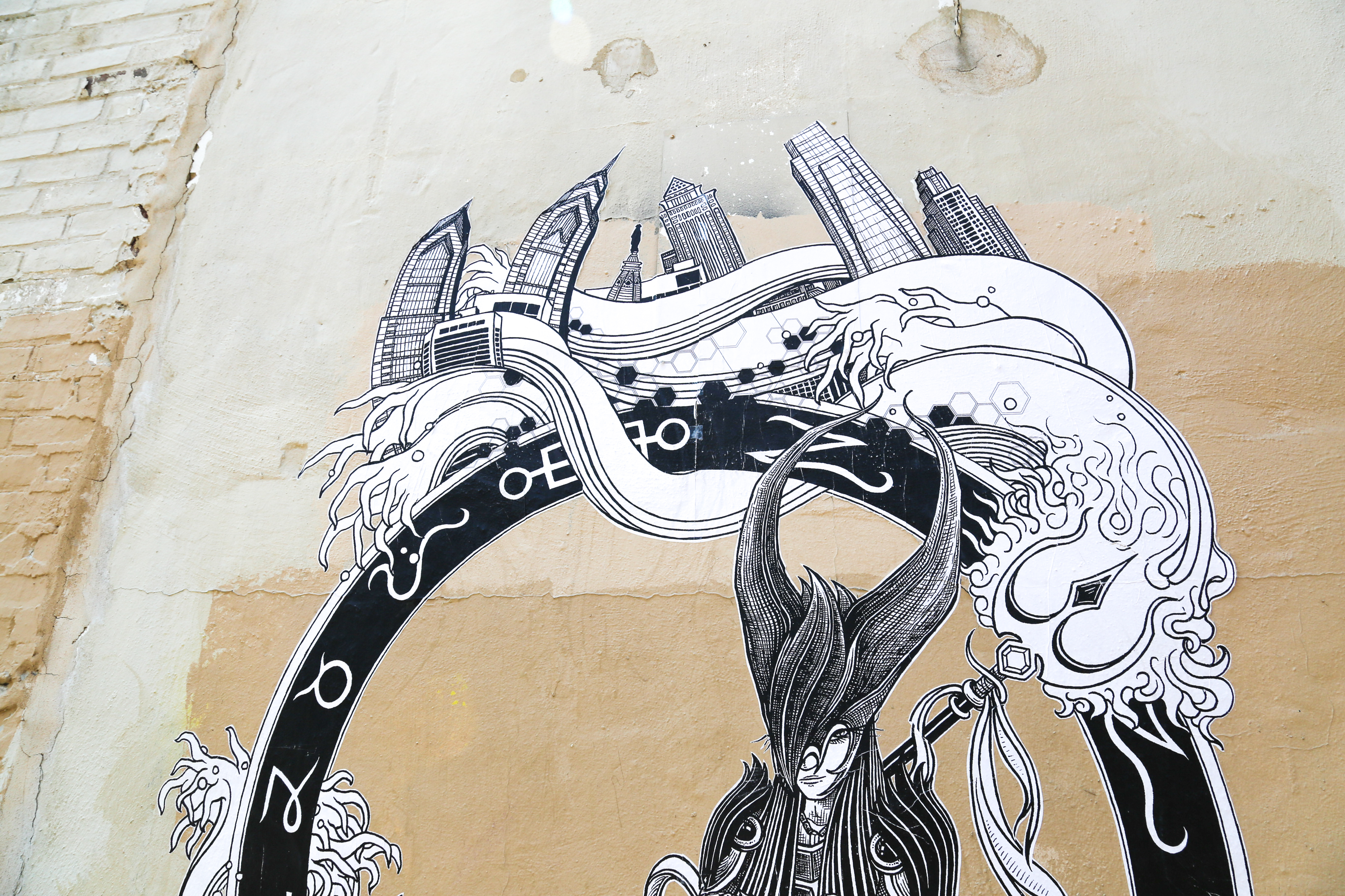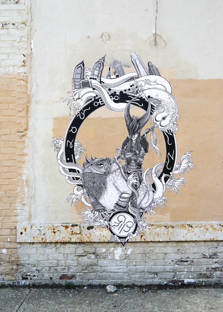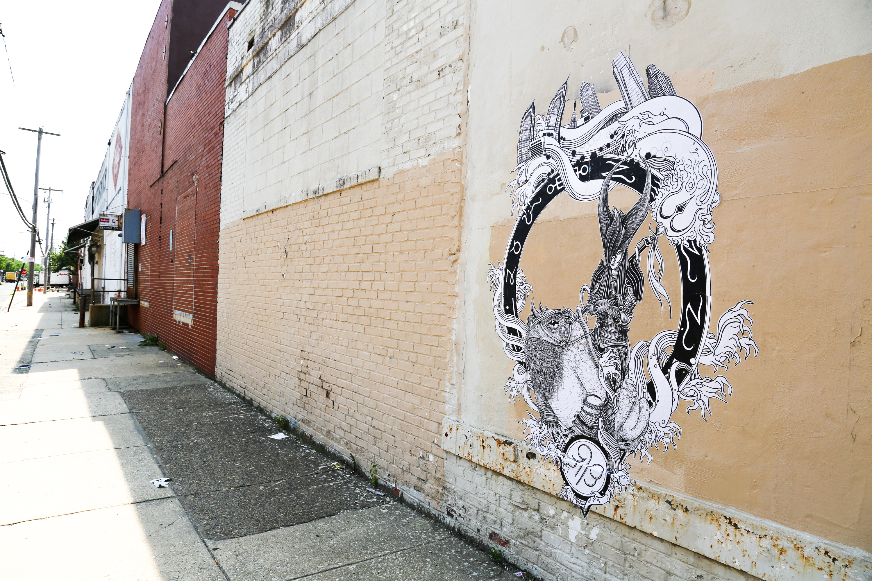 “Each piece in the series is my representation of different spirits connected to what I think of as quintessential aspects of Philly…or at least the aspects that I think have the most…character? Vacant lots, abandoned factories, the rivers, and the space between high things.”