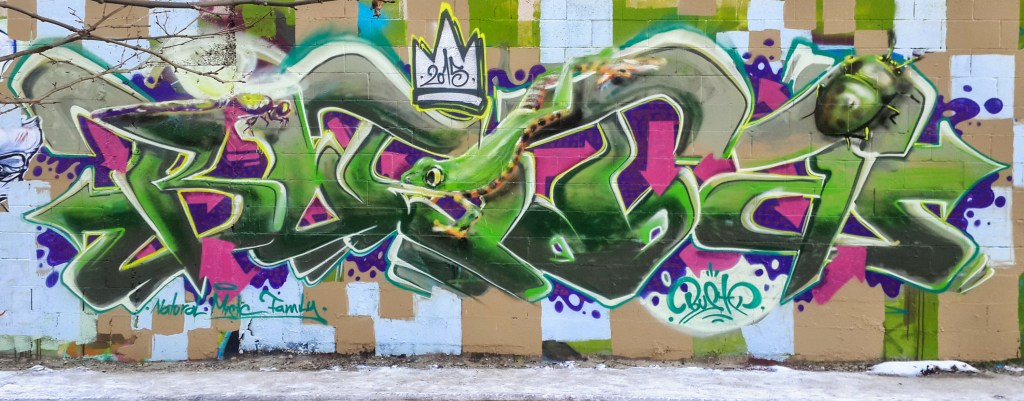 When I think about the importance of graffiti, I look at it as like public art in general, because also I like to include stencil, wheatpaste, sculpture, whatever is outside, it’s important because people need to be educated about art. Art is necessary for life, to understand life, in all perspectives. Music, dance, art, expression, graffiti–it’s like a necessity from the person to express themselves in some kind of way. Without public art, the city will be lost. I feel like it’s necessary. You need that activity of people putting energy in the walls. You need that energy in there, you need that action, the interaction between people and to drive people to different things. And I see it also from the buffer’s, the owner of a property, and people in general point of view. Because, look, probably as an owner you gotta paint the wall back and everything. For the buffer, you’re giving them jobs to keep making money buffing the walls, and the general public is exposed to all type of interpretations. And the only thing is, it’s so personal. That’s why I say that art is the hardest job in the world, because if I think, Oh! My hand is awesome, man! Like I can do it anywhere. But if I’m gonna put it on somebody’s house, the owner is gonna be like, “What the fuck is that scribble, man!? You’ve ruined my house!” So that’s why I prefer to get that skill level so they can ask you, “Look: I need something in here. Can you do it?” Okay, cool. I do it and I make you happy. So, you’re producing jobs, you’re producing negative effects, positive effects, you’re producing money out of it. So everything, everything is going on. So if you stop that, you stop a big part of humanity in there.