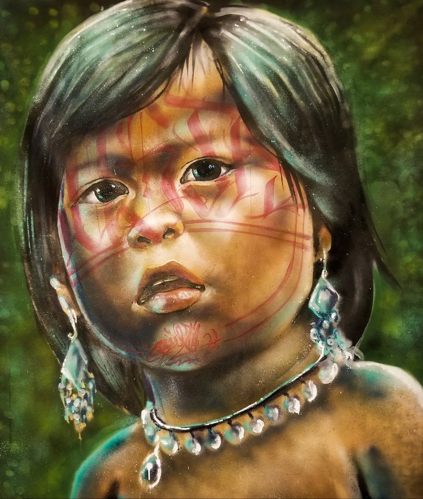 There are groups working to protect the Nukak-Makú, but the money is bigger, y’know what I mean? *Sighs* it’s like everything. Like, not too long ago I did a mural in Allentown about Allentown history for a competition I did there. I was researching about the Lenape that used to be in this area, the Delaware tribe and William Penn. It’s crazy–because at first he was like, to the indigenous, “Okay, you have this piece of land, blah blah blah, I give you resources, I give you space, da da—” and then, “Oh no, we got these immigrants, let’s put them in there so they can work and live in these areas, and kick the indigenous out.” Then they started kicking all of the Lenape people out and they got rid of all the indigenous in here, the same way. Y’know? So it’s about money. There can be support groups trying to keep them alive, or like keep the traditions, and stuff like that, but what can you do against big bulldozers trying to like fucking destroy everything, and like you’re like useless and defenseless.