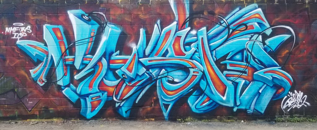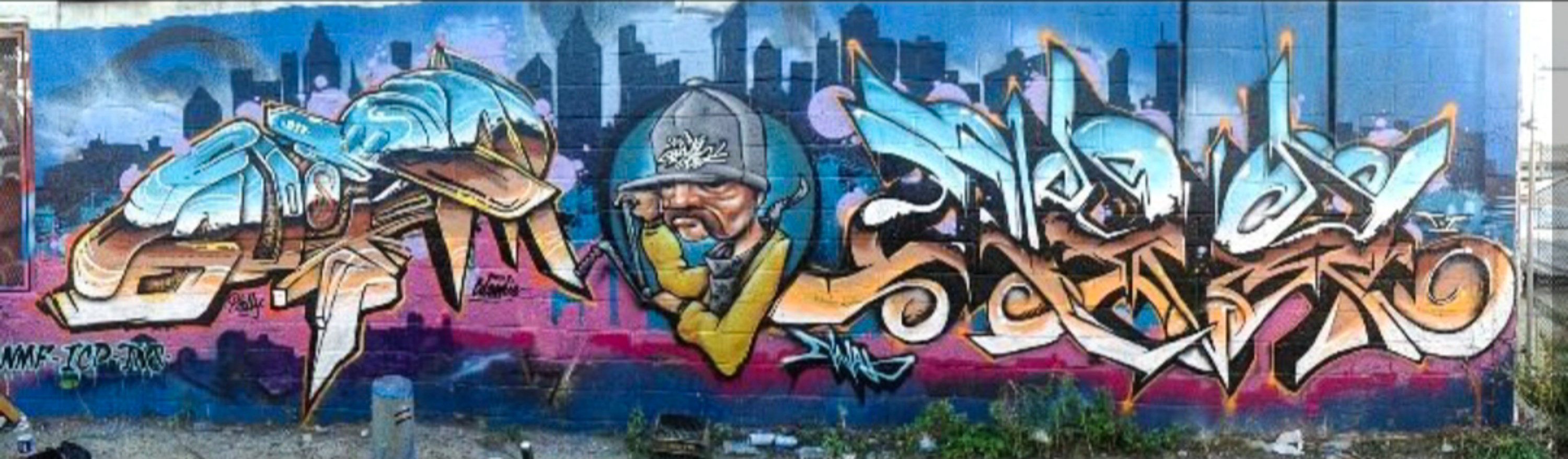 The people that are giving the definition are not educated on the fact that not all graffiti and almost no Philly graffiti nowadays is gang-related, and that a lot of the early Philly writers used graffiti as an opportunity to stay out of gang and drug activity. To them, graffiti everywhere is gang and drug-related. Like if you see four dudes with a hood on and a thing here *pretends to be holding a spray can at the waist*, like walking down the street, *makes spray noises* *whispering*, “Fuck, let’s go.” Like, they think it’s drug-related, gang-related, crime-related, everything-related–y’know what I mean? Like, tell anybody, anybody–that doesn’t know about graffiti–to draw or picture a graffiti writer. They are gonna imagine a gangster, or like, you know, a “hood kid” or something like that. They don’t understand–they aren’t a part of it. Or like they don’t know about the medicinal part–because there’s like a medicinal part, actually, like a sanity part. Like a lot of people do it like as a release or get away from drugs. I have so many friends, most of all in Philly, that are like recovered from addiction, from heroin, that used the graffiti as an outlet to not keep doing heroin. So it’s helping people in some way. You know, sadly people don’t understand, so they’re gonna give a definition like that. So this is a general definition that explains what graffiti is for the general public, you know what I mean? I think this is a good definition for, you know, for a general understanding.