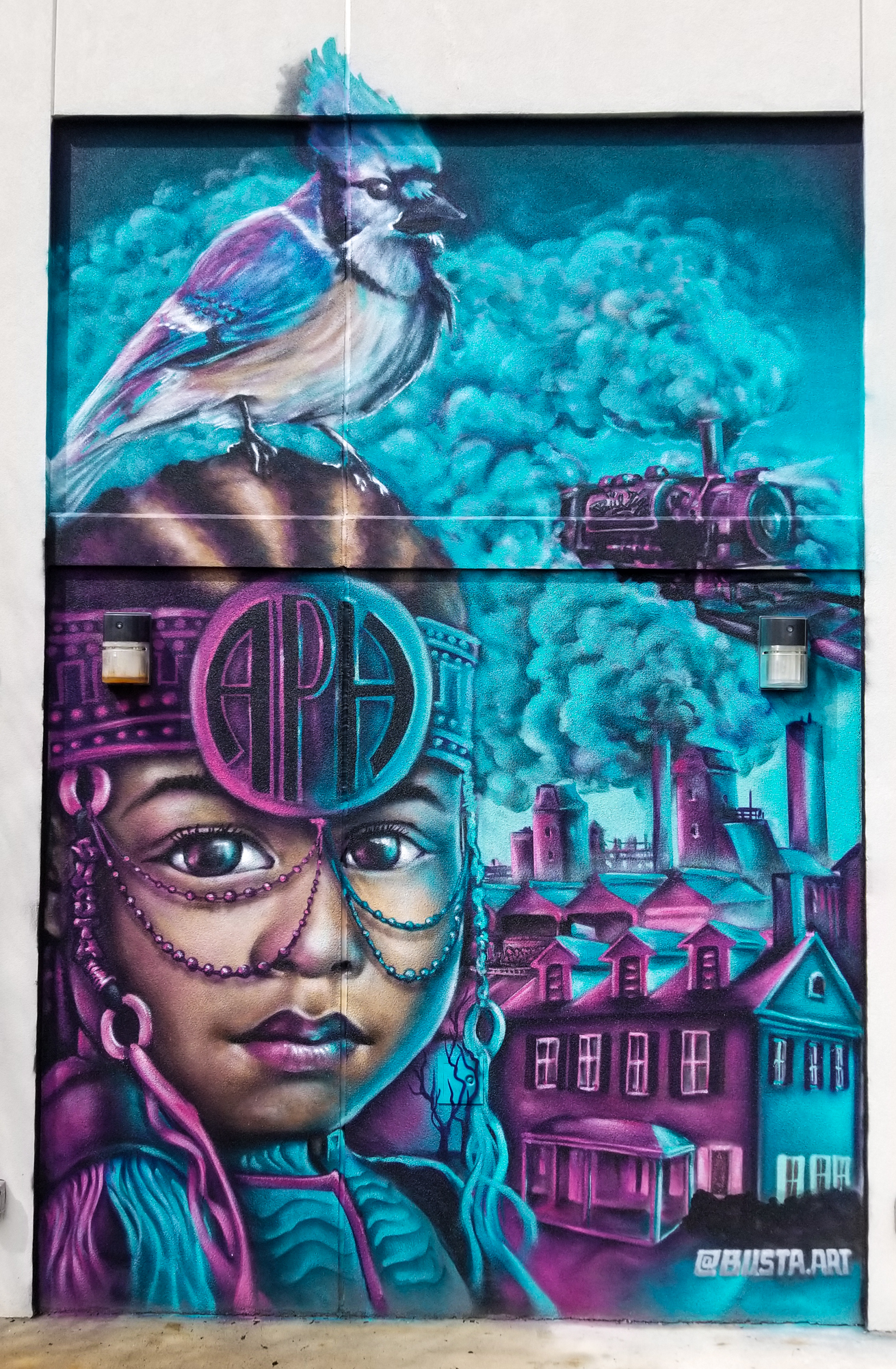 Busta grew up in Chía, a working-class suburb of Colombia’s capital city, Bogota. He and his friends lived and breathed skateboarding and hip-hop culture, and as a young kid he roamed the town in an oversized t-shirt, baggy pants, and chunky shoes, earning him the nickname Busta Rimas, after the legendary New York rapper. The name stuck, and he carried it with him as he made his way into Bogota to attend art school and eventually to the United States when he immigrated to Philadelphia in order to study and contribute to the city’s storied graffiti history. Busta has considerable technical ability as a writer and artist. His graffiti writing is constantly morphing as he tries to incorporate an infinite variety of fills, lettering styles, and design tricks. For themed murals and portraits, he does deep research to ensure that he accurately captures his subject matter, whether the work be the latest in his personal series on threatened indigenous peoples in Colombia, or a commissioned piece he’s doing for a client.