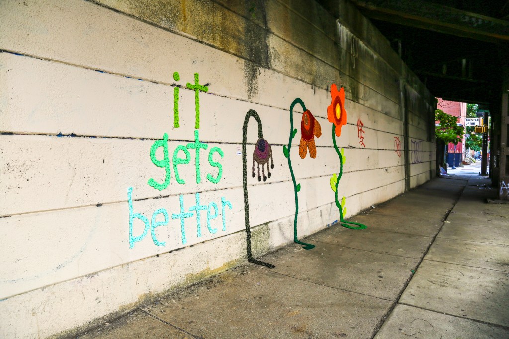 “I think it’s an important message to let others know that, hey, you know those intense, scary feelings of hopelessness or apathy or self-doubt that you feel from time to time? I feel them too. And I guarantee that guy across the street over there has felt them also. I want people to know that they are not alone, even though it often can feel like it. I hope this piece can open up a dialog amongst those who walk by, and encourage them to talk about these things with one another that are often hard to talk about.”