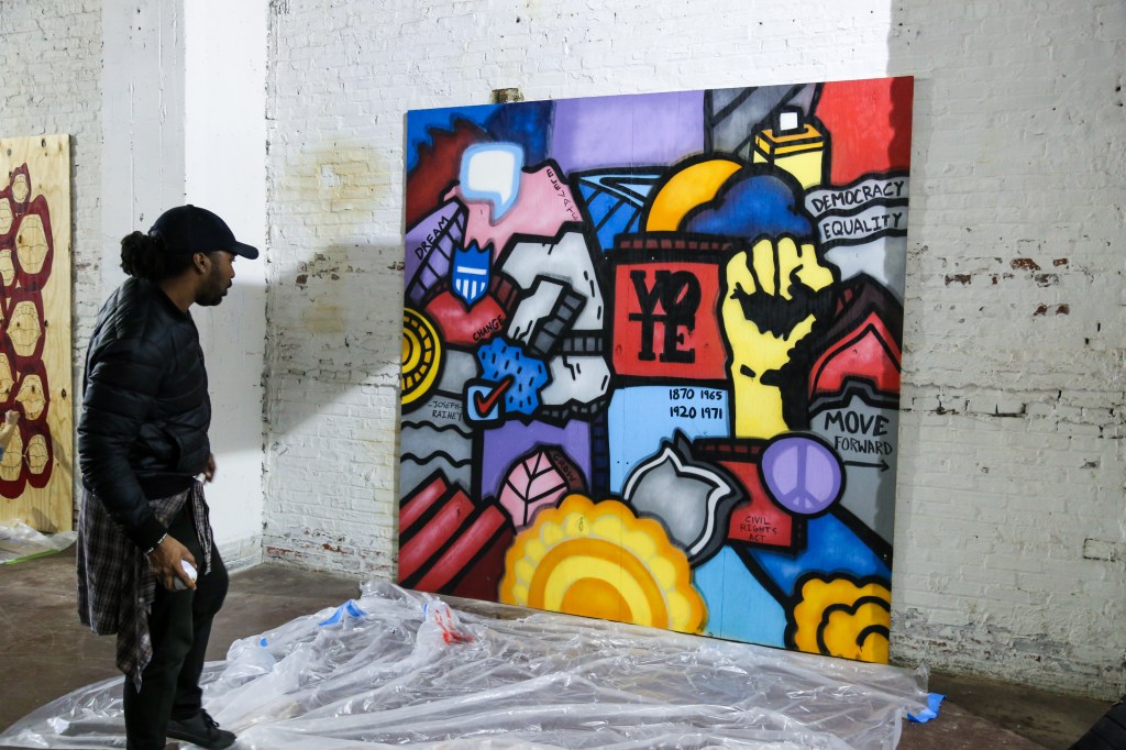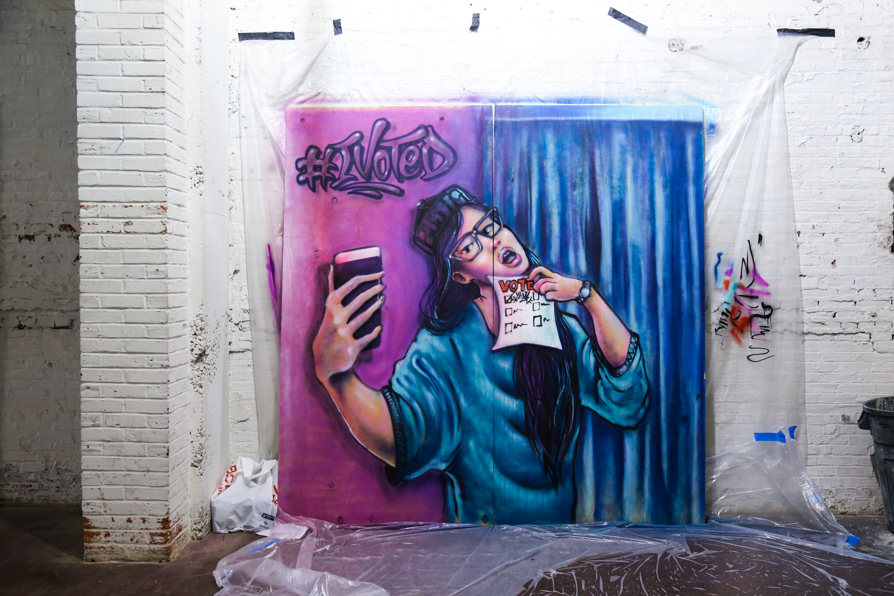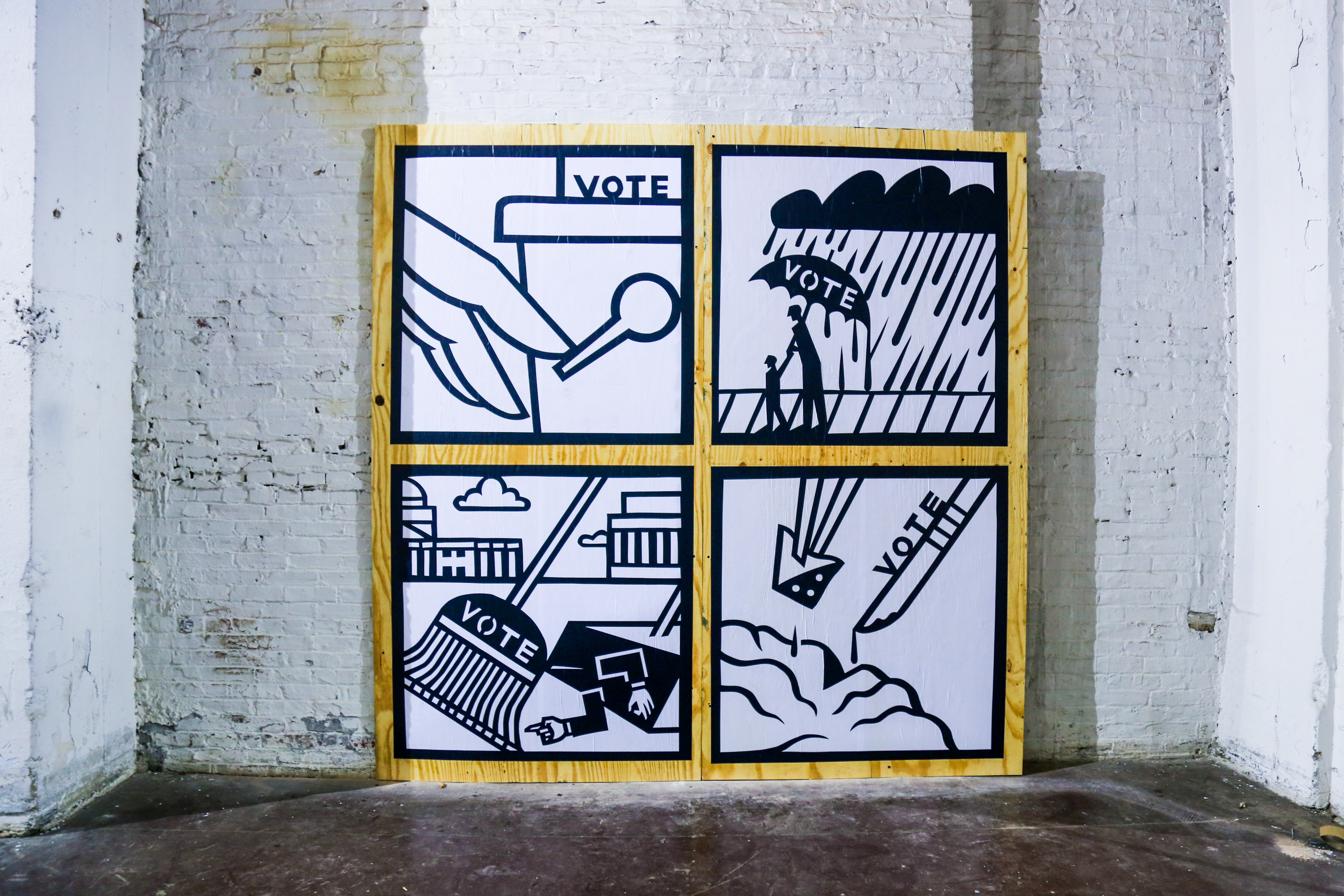 So thrilled to offer y’all a behind-the-scenes look at To the Polls, an exhibition I’ve curated and organized with my amazing partners/funders at Mural Arts Philadelphia. Featuring the work of 10 Philadelphia artists, the exhibition aims to excite the electorate, encouraging civic engagement in order to counter historically low voter turnout for midterm elections!