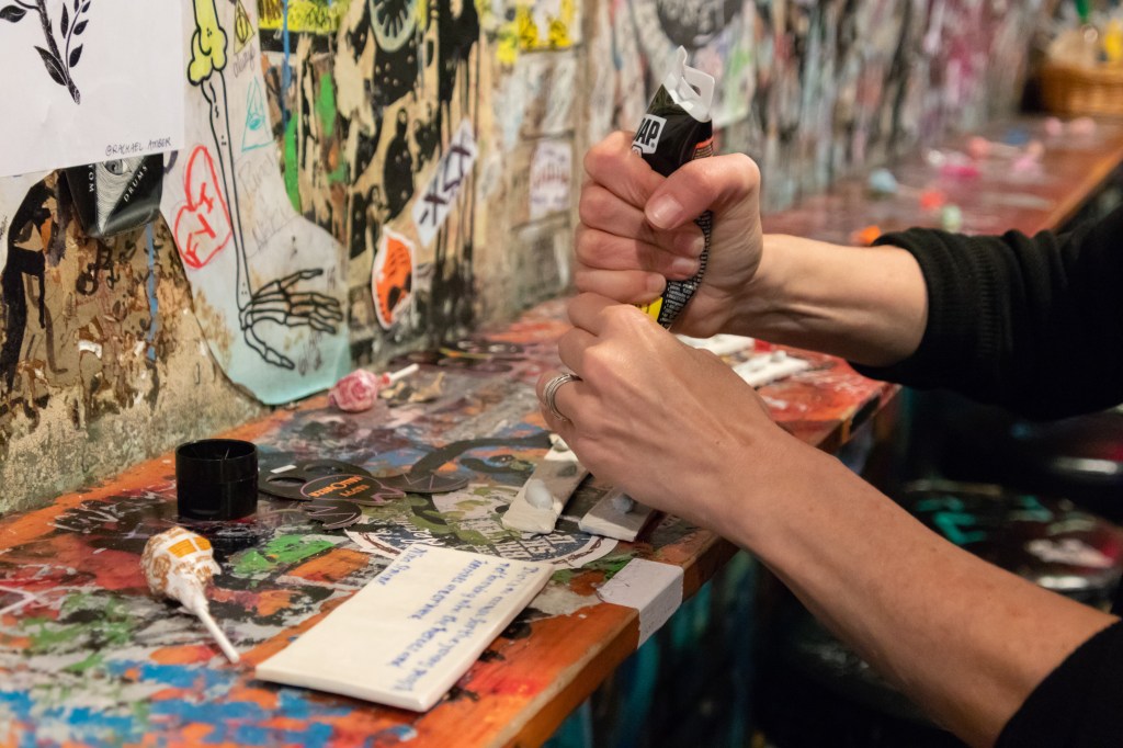 Hope Hummingbird: Yes. Everything going on in the world was just getting really depressing and I was feeling really overwhelmed. I had a personal connection with seeing a hummingbird at the most perfect time ever, and it kind of gave me this moment of hope and snapped me out of a negative state. And I thought to myself, Wow, if that could happen to other people, that would be great. I never considered being a street artist, I just thought I was going to put these hummingbirds out, but you can’t work in a vacuum. And people started to notice and wonder who was putting them out. When I first started, the Hope Hummingbird had to do with this specific tile – it wasn’t my name. It became my name just out of that. I wasn’t going to go beyond the hummingbirds. It just kept evolving and changing and I got more into it.