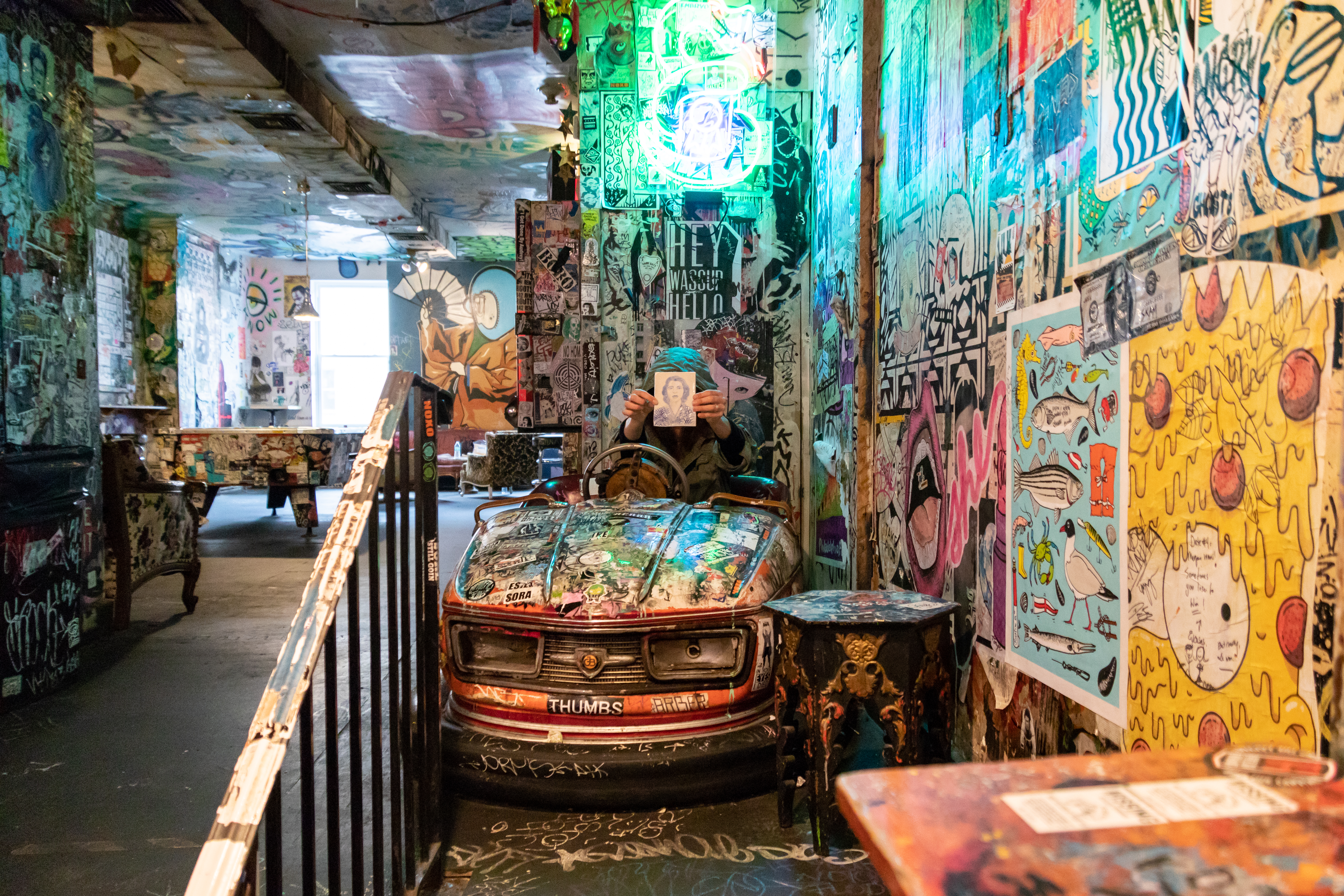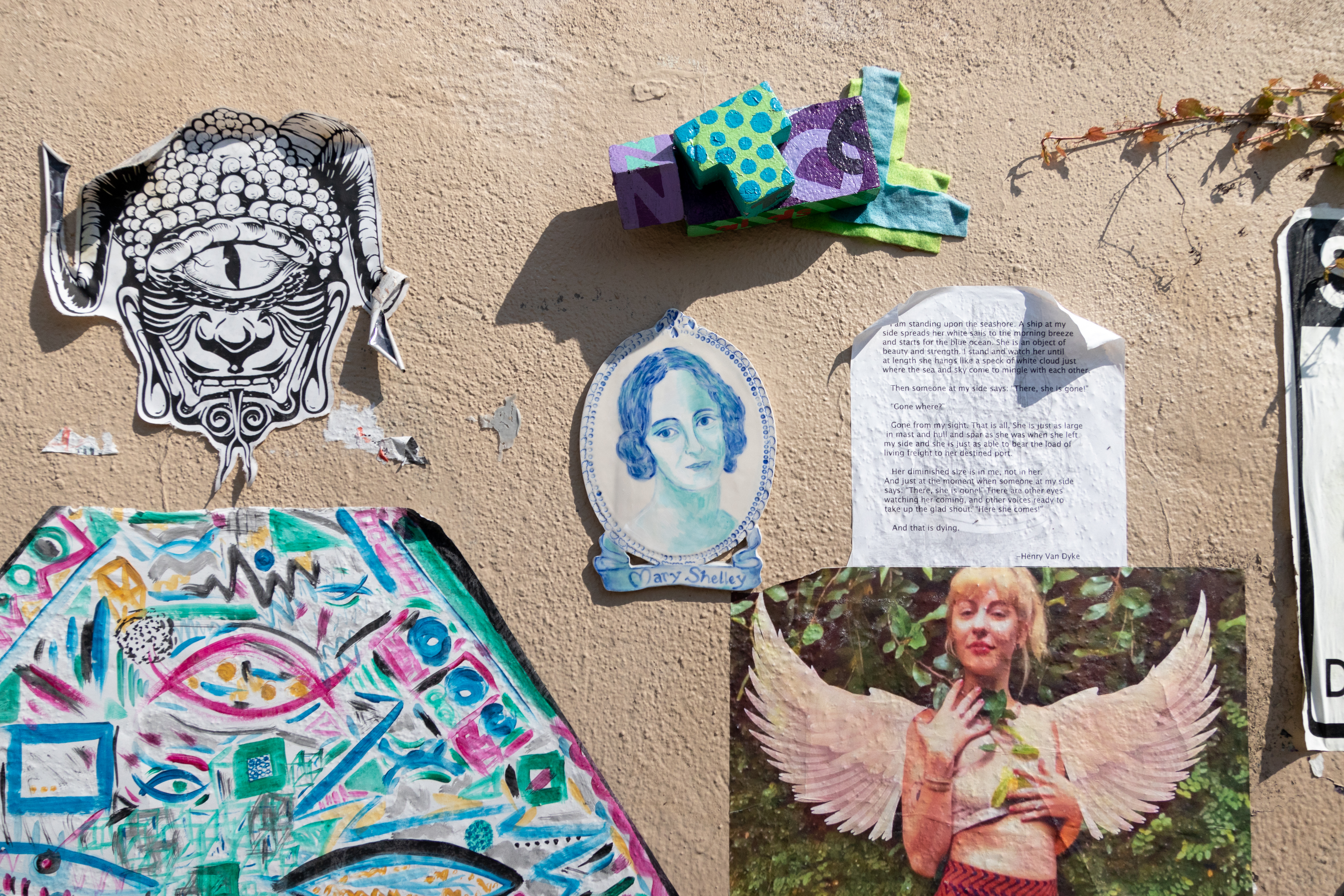 HH: I wanted to make an arch with a hole in it, that just has the kitty. I was going to cut out this big piece of wood, and then paint it like stained glass or something? But then all these people started putting stickers, and I felt like I didn’t want to discourage that… I don’t know about the Kitty Shrine!