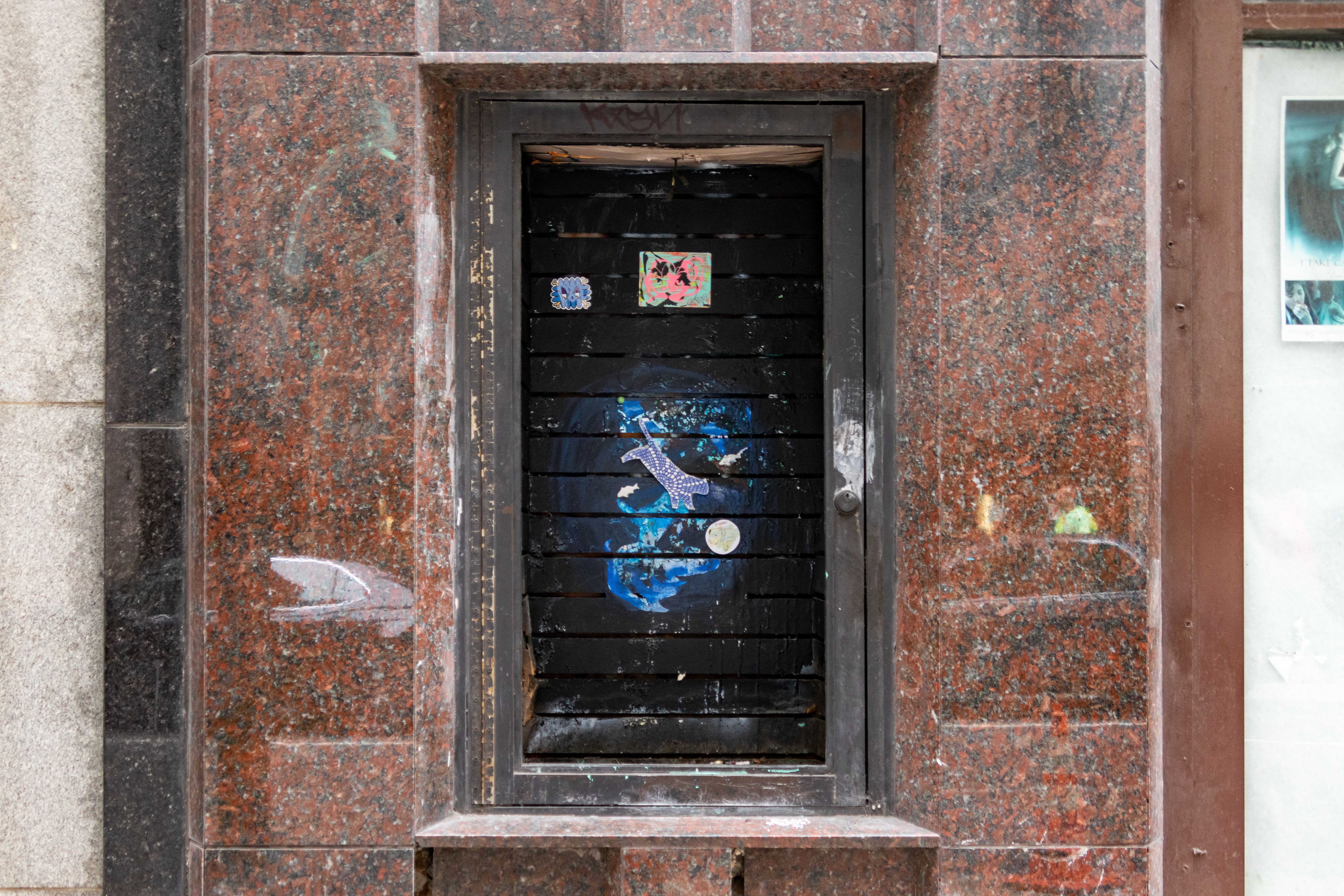 HH: Oh my god! The Kitty Shrine! So weird… The Kitty Shrine started as a ceramic cat [a collaboration with Sixteen Cats] in what appears to be an abandoned display case at 13th and Chestnut. It is pretty deep, so people used to throw trash in it. Sixteen put one of the cats in it and it became a priority for us, and eventually others, to keep the space clean for the cat. It just happened! But it became a thing! And then people will send me pictures like, “Look what I added to the Kitty Shrine!” Then when I saw the cone—