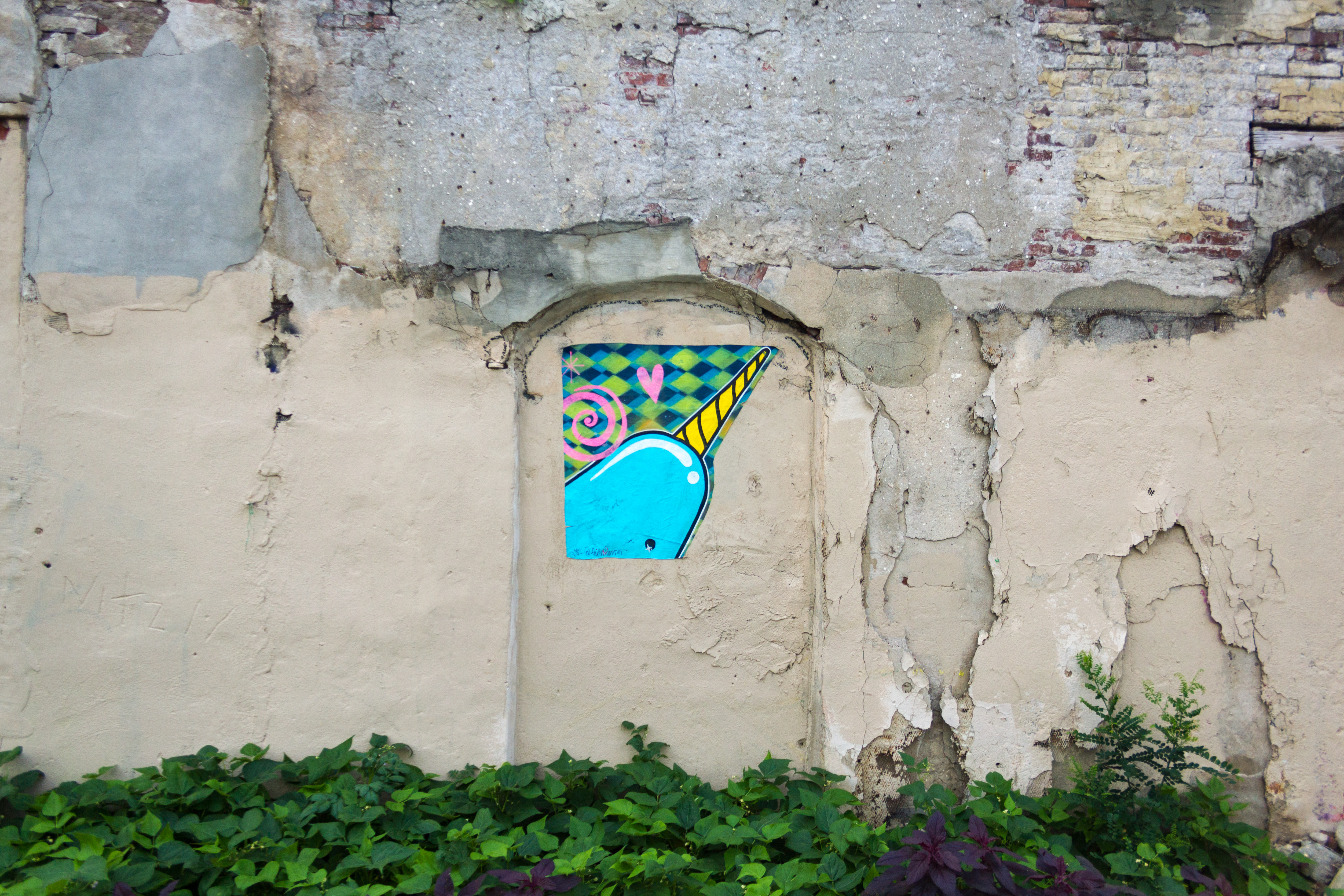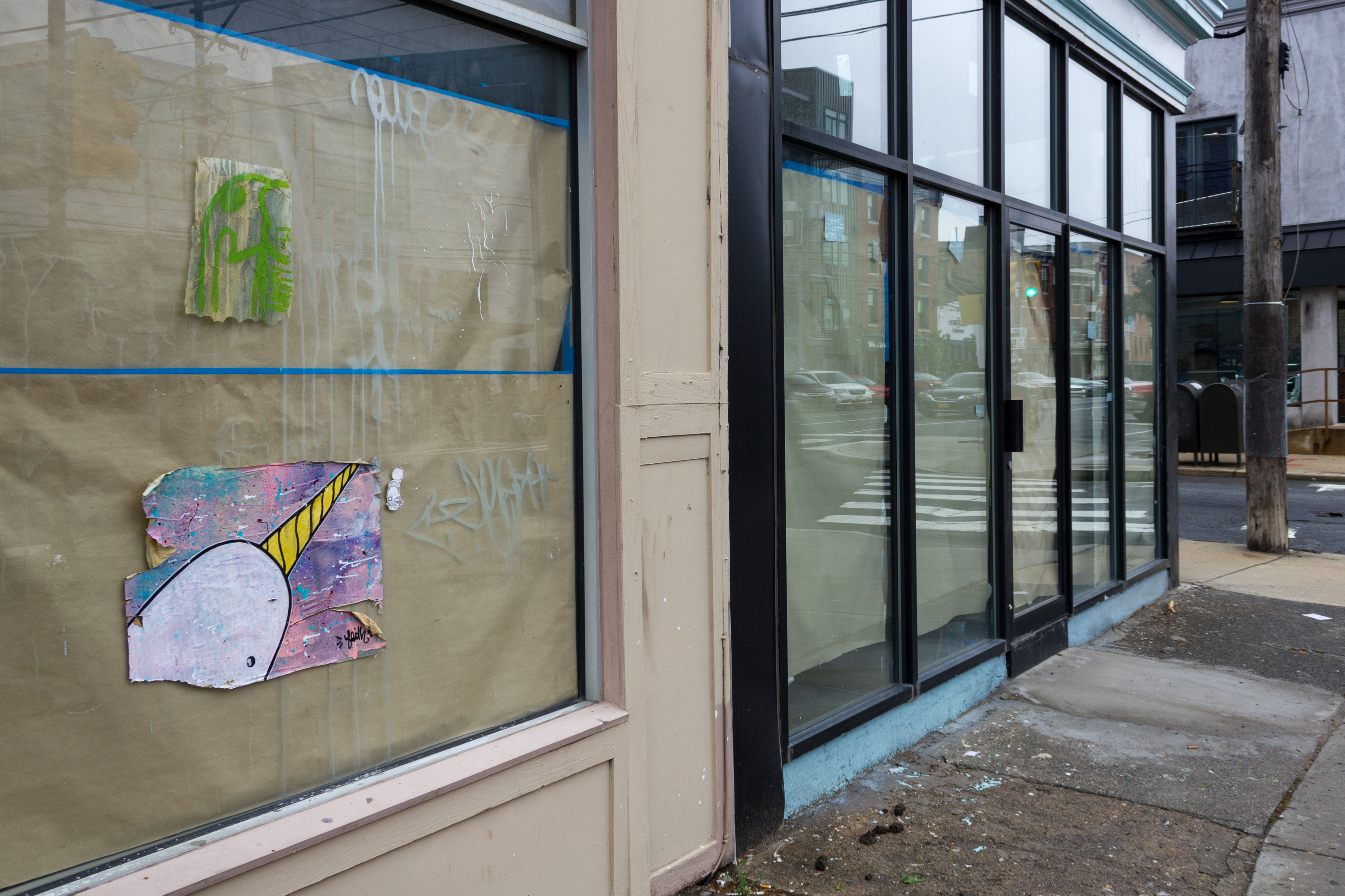 From stickers to graffiti, wheatpastes to canvasses (and magnets and postcards and outlet wall plates and…) FaithsFunnn has been “the voice of non-seriousness” in Philly street art for more than six years. Best-known for her colorful narwhals, Faith paints and draws all of her work by hand. She also makes it a point to understand and respect the history, rules, and culture of street art and graffiti, in turn earning the respect of those communities.