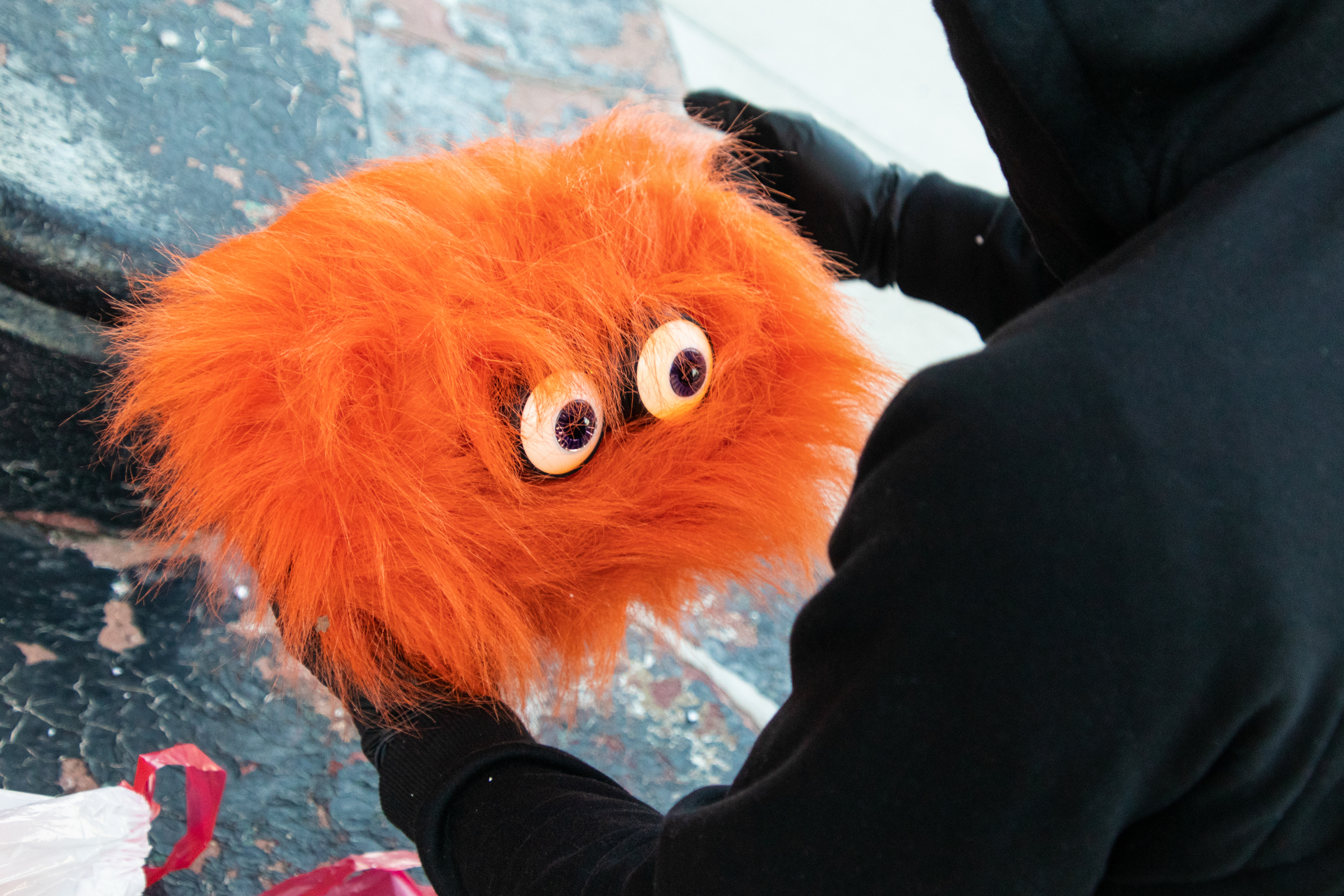 “Don’t worry children…Gr-‘IT’-ty doesn’t bite…too hard.” That’s the caption left by Philly street artist Kid Hazo on the Instagram post of his Gritty meets IT inspired installation, put up tonight at Front and Bainbridge Streets in Queen Village.