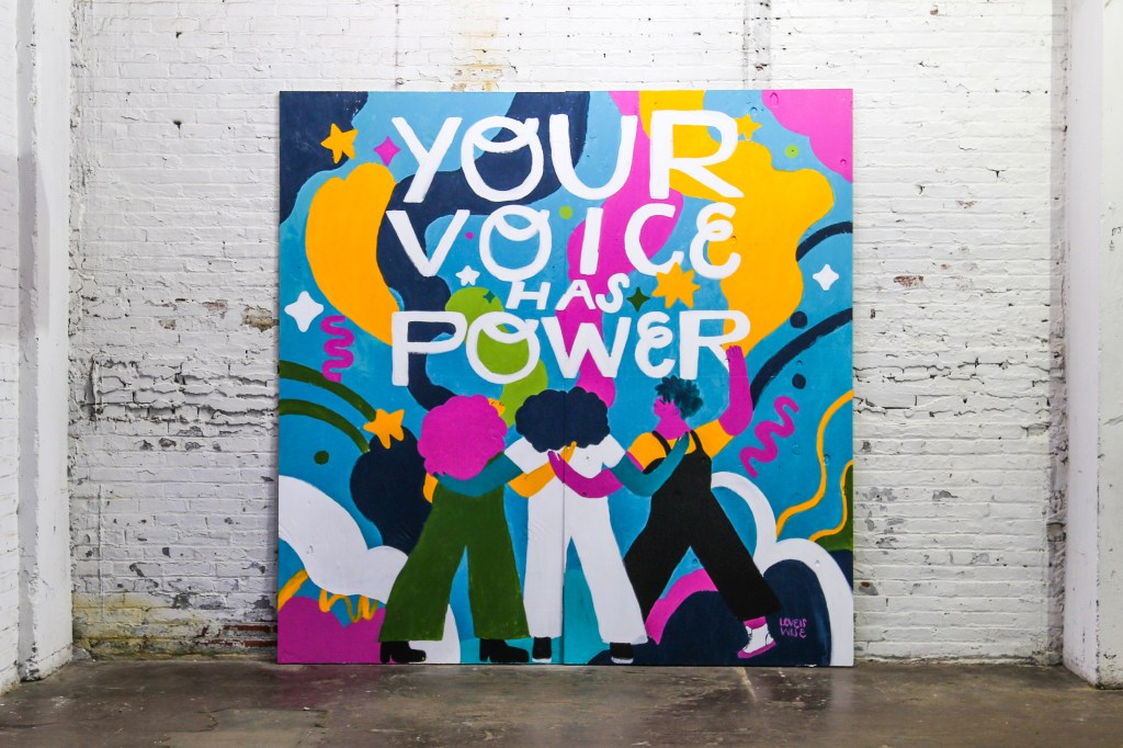 To the Polls was a mural exhibition that took place at 448 N. 10th Street in Philadelphia’s Spring Arts neighborhood from from September 26, 2018 through October 3, 2018. Organized and curated by Streets Dept’s Conrad Benner with support from Mural Arts Philadelphia, the exhibition worked with 10 Philly-based artists to create 10 temporary 8×8-foot murals to rally the Philadelphia community around civic participation through the act of voting.