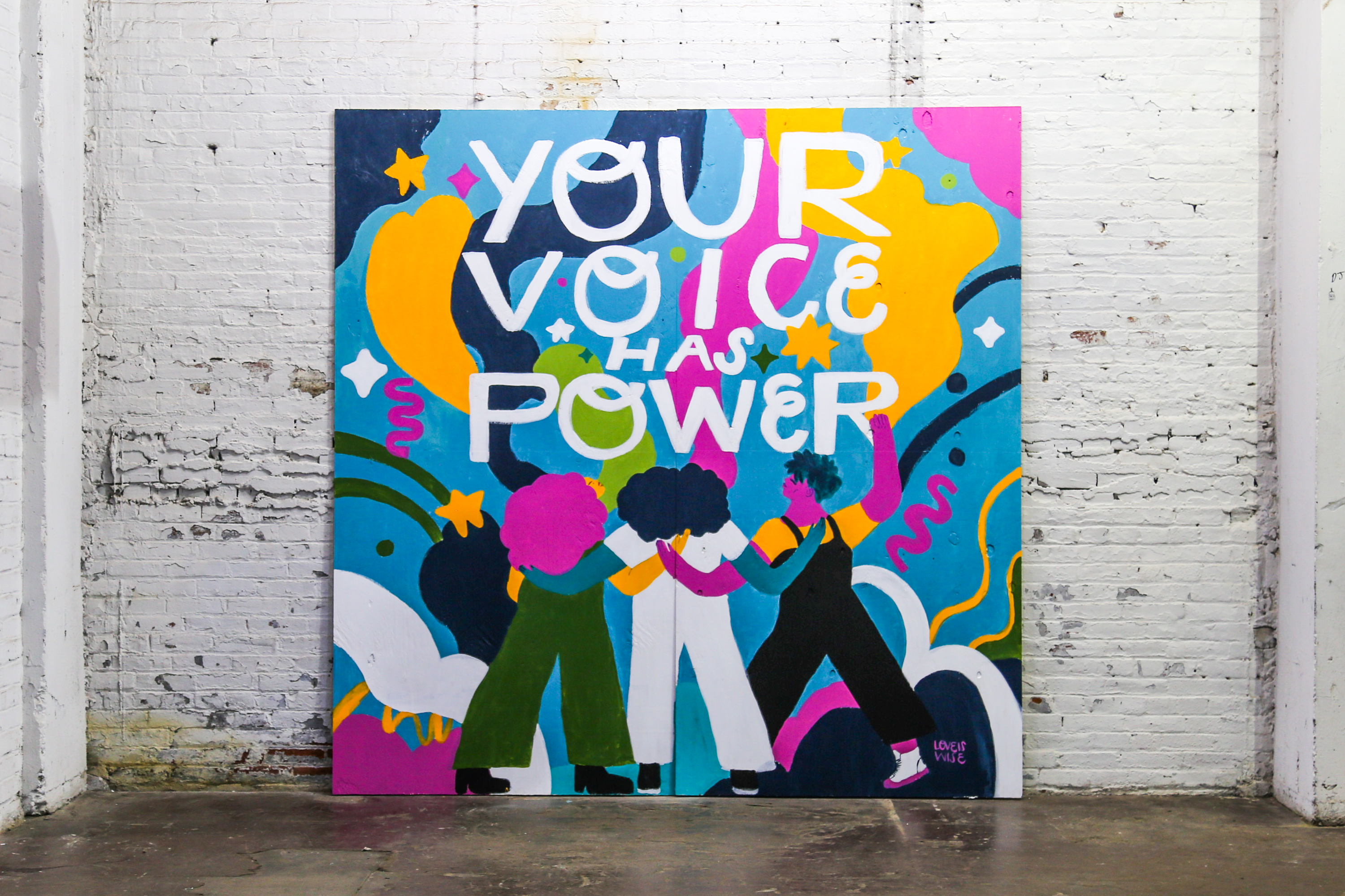 I’ve admired street art for as long as I can remember. Walking down the street became like walking through a museum—ever-inspiring, ever-changing, ever-accessible. After a lifetime of creating art that stayed in my room or hung in galleries, I dove into street art during a time that my health plummeted in ways I never imagined. For months, I quite literally could not speak, my words a sea of vowels. But a fire inside me ignited during that time—I had so much I wanted and needed to say. I demanded to be heard. In this current political wildfire, I believe that demanding to be heard is both rebellious and patriotic. I intended this piece to convey the urgency of action; the need for a fulcrum shift. I hope this inspires and moves whoever sees it to feel like I did after I was able to speak again—full of fire and direction.