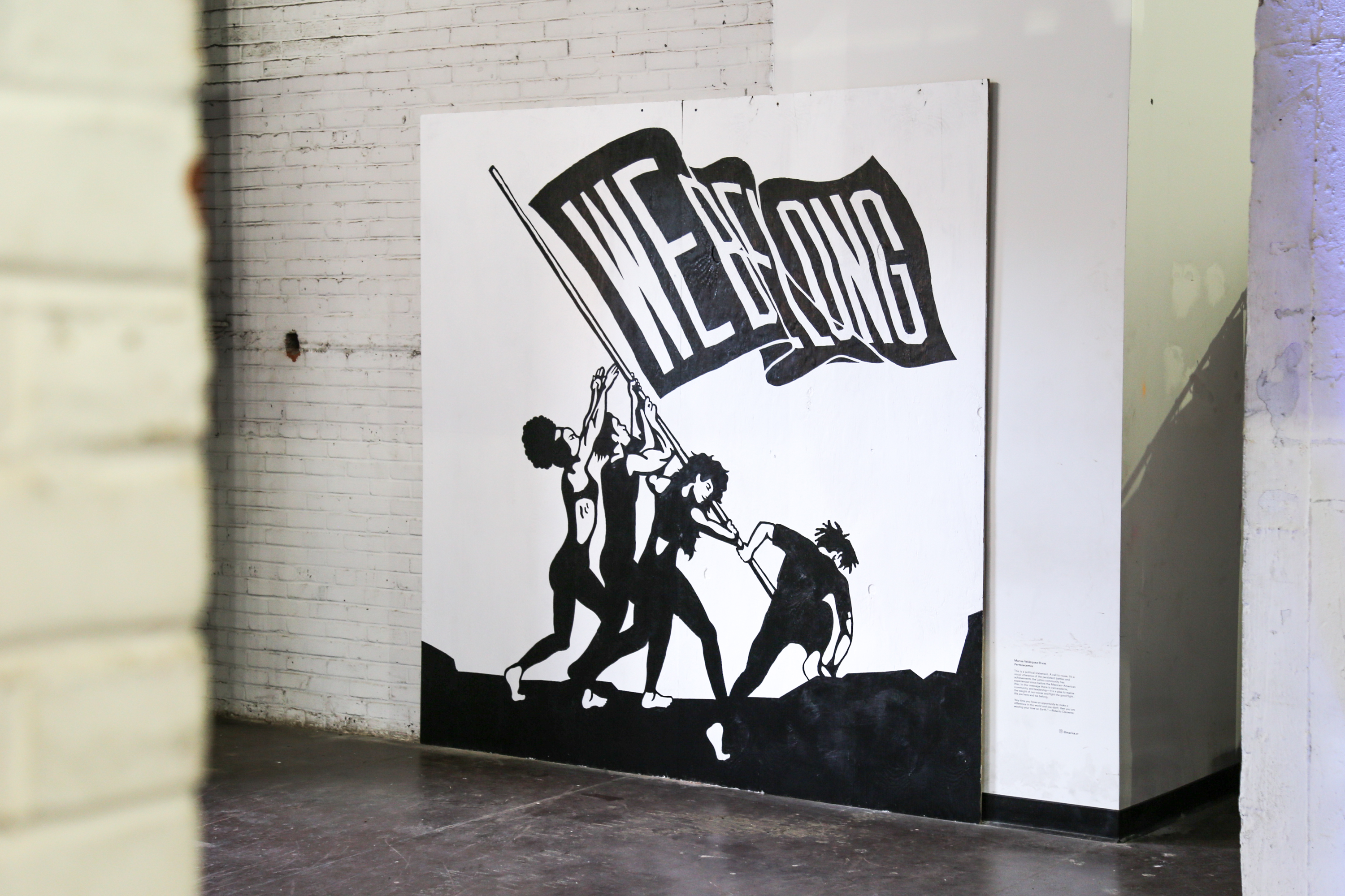 This is a political statement. A call to rouse. A spiritual expression. Not just lines and blocks of colors that were conceptualized, sketched, vectored, printed, and painted. It’s a visual utterance of the persistent battles and achievements the Latino community has experienced since before the Mexican–American War. In this message there is camaraderie, community, and leadership—it is a plea to realize the weight of our voices and fight the good fight. We are here and we belong.
