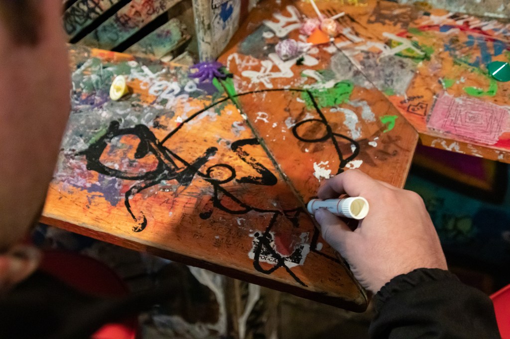 But Bob started, actually, when the internet became more available. I would just get on Google to look up graffiti; like why do people do this? because it was so interesting to me. In Europe at the time, people were doing more of the stickers like what we see here—characters and logos and things. That’s kind of what got me into Bob, because at the same time, I was going to school for design. So graffiti letters were really interesting to me and I liked doing it, but once I saw that people were doing it with logos and designs and stuff, I was like I think it would be cool to do THAT—to come up with my own logo that I could put everywhere.