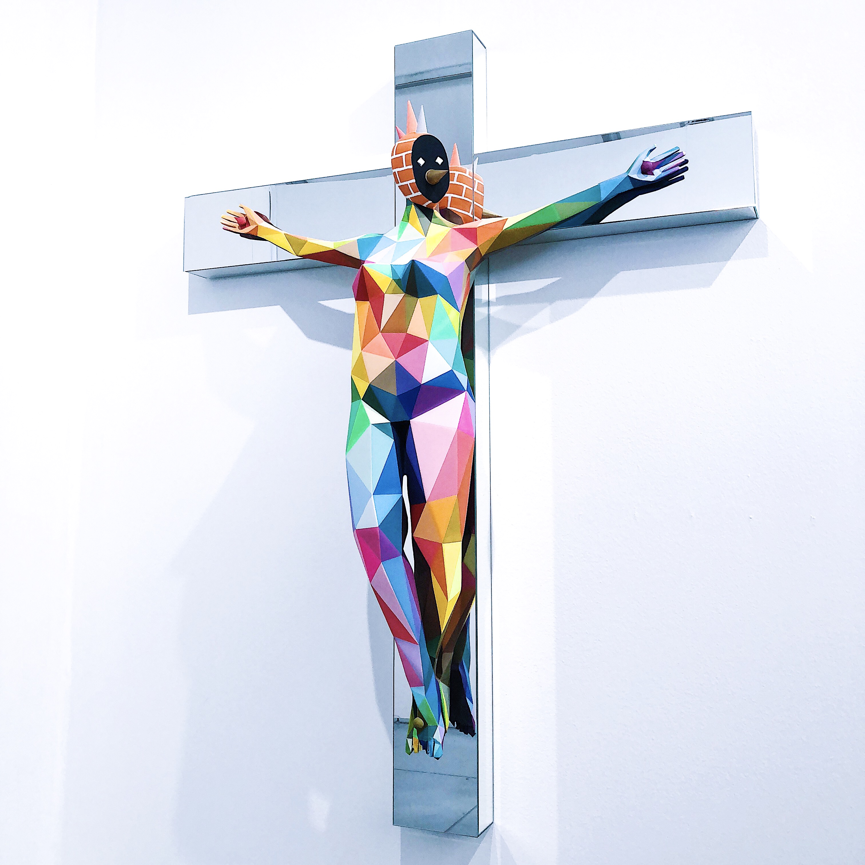 “Prismatic, mystical, and infused with color, Okuda San Miguel’s murals, street art, sculptures, tapestries, photographs, installations and more vibrate with an energy that is impossible to ignore. Laden with enigmatic imagery and highly pigmented geometries, his multi-disciplinary work both suggests and challenges themes of spirituality, modernity, environmentalism and the human condition.” (from Design Boom)