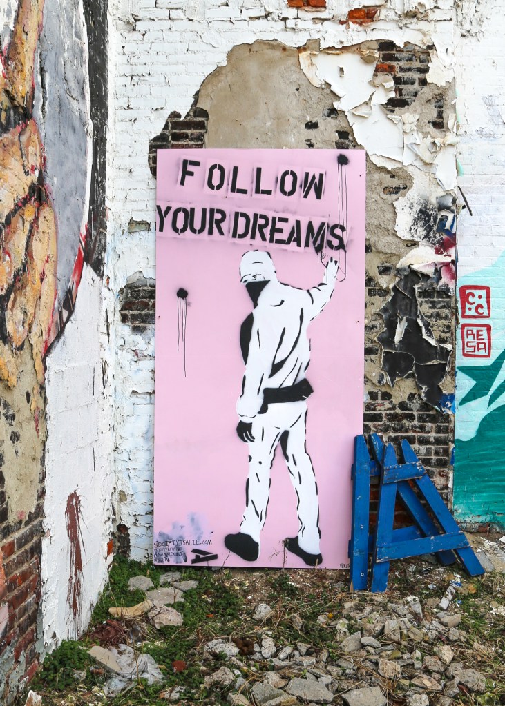New “Follow Your Dreams” stencil potted at 2nd and Poplar streets in Northern Liberties by Tucker Fupper!