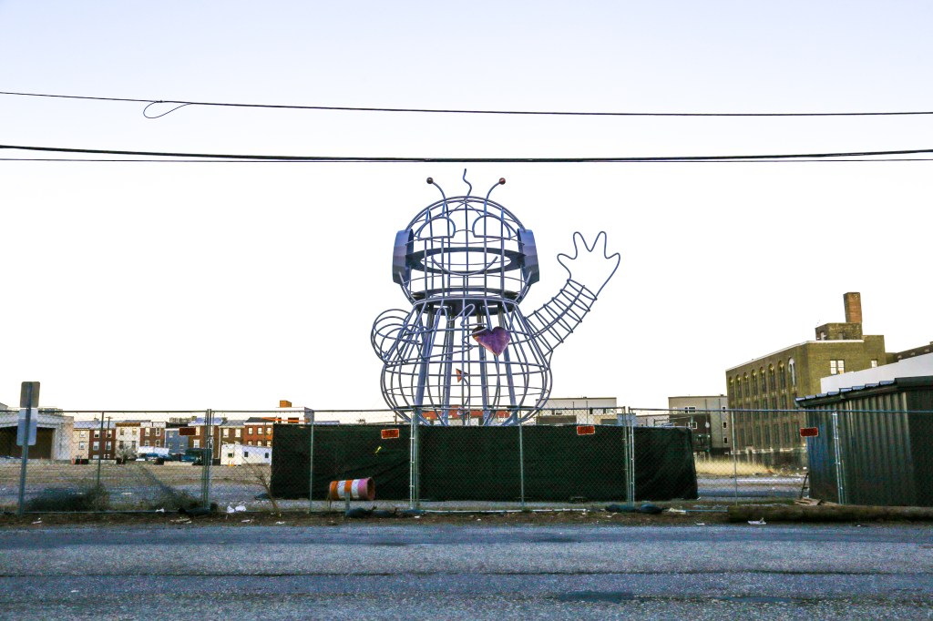 I’m not sure how the artist’s original intent for the installation to be climbed and interacted with can or will be managed in its new location across the street from a Wahlburgers. Which, I’m guessing, is why it’s still currently fenced off. But according to CBS 3’s post, there are currently no official plans for how long BEBOT will stay in Philly, or if its location or fence will change or move. Though Andrea is quoted as being a bit more optimistic: “It’s definitely my hope that BEBOT will stay in Philadelphia. I want him to belong to Philadelphia.”