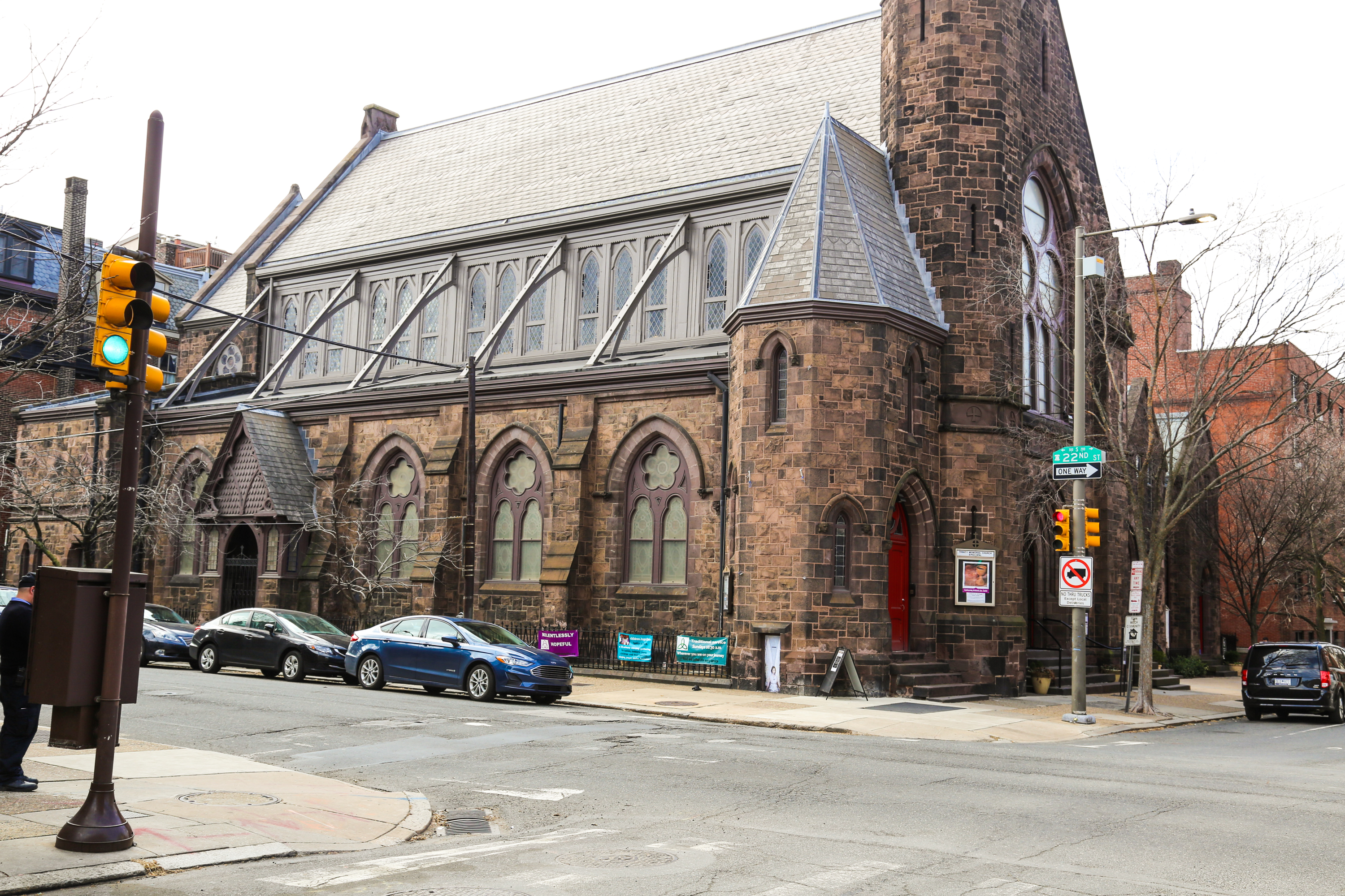 Titled Angel, the mini-mural was created by artist and former appellate attorney Tom Lincoln and is located on Trinity Memorial Church at 22nd and Spruce streets in Rittenhouse Square upon the invite of its rector, Rev. Donna Maree.