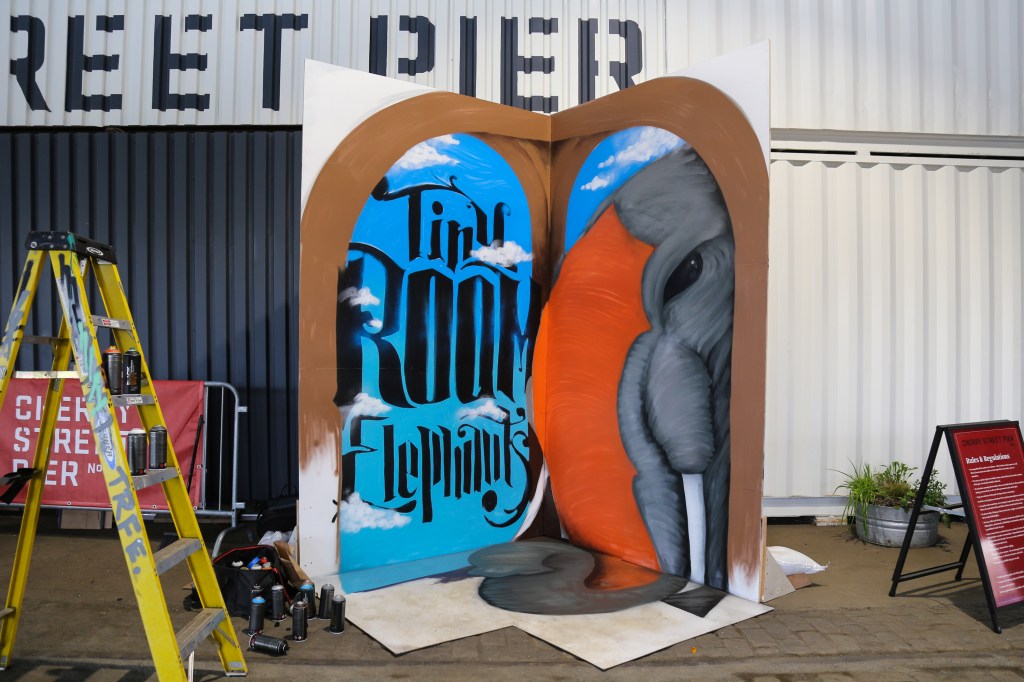 Tiny Room for Elephants (TRFE) is, at its core, an incredible mix of pop-up murals from some of Philadelphia’s most talented and active artists. And this year’s exhibition, its 4th iteration since 2014, will be held at Cherry Street Pier, becoming the biggest (and arguably best) TRFE yet! Not only will there be temporary murals from dozens of Philly artists, but there will also be a couple really dynamic art installations, as well as TRFE’s first ever sticker wall.