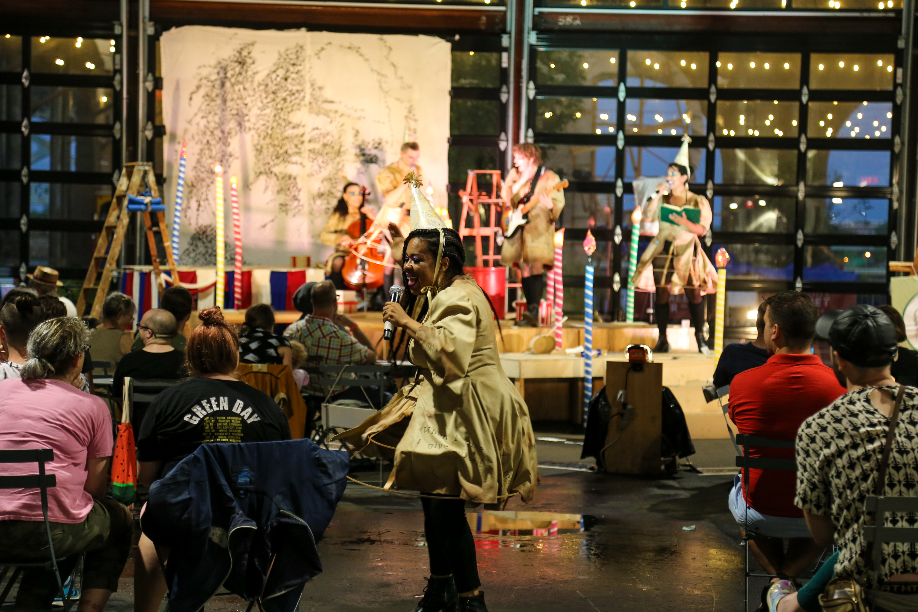 Bearded Ladies Cabaret is a Philly-based experimental cabaret group founded by John Jarboe that is, “devoted to exploiting all the possibilities of intimate, homemade theater through beautiful songs, tricked-out costume changes, drag, and virtuosic prop construction.” And this performance at Cherry Street Pier was created to celebrate and reflect the contributions and life of legendary queer American poet Walt Whitman on the 200th anniversary of his birth, created in partnership with Whitman at 200.