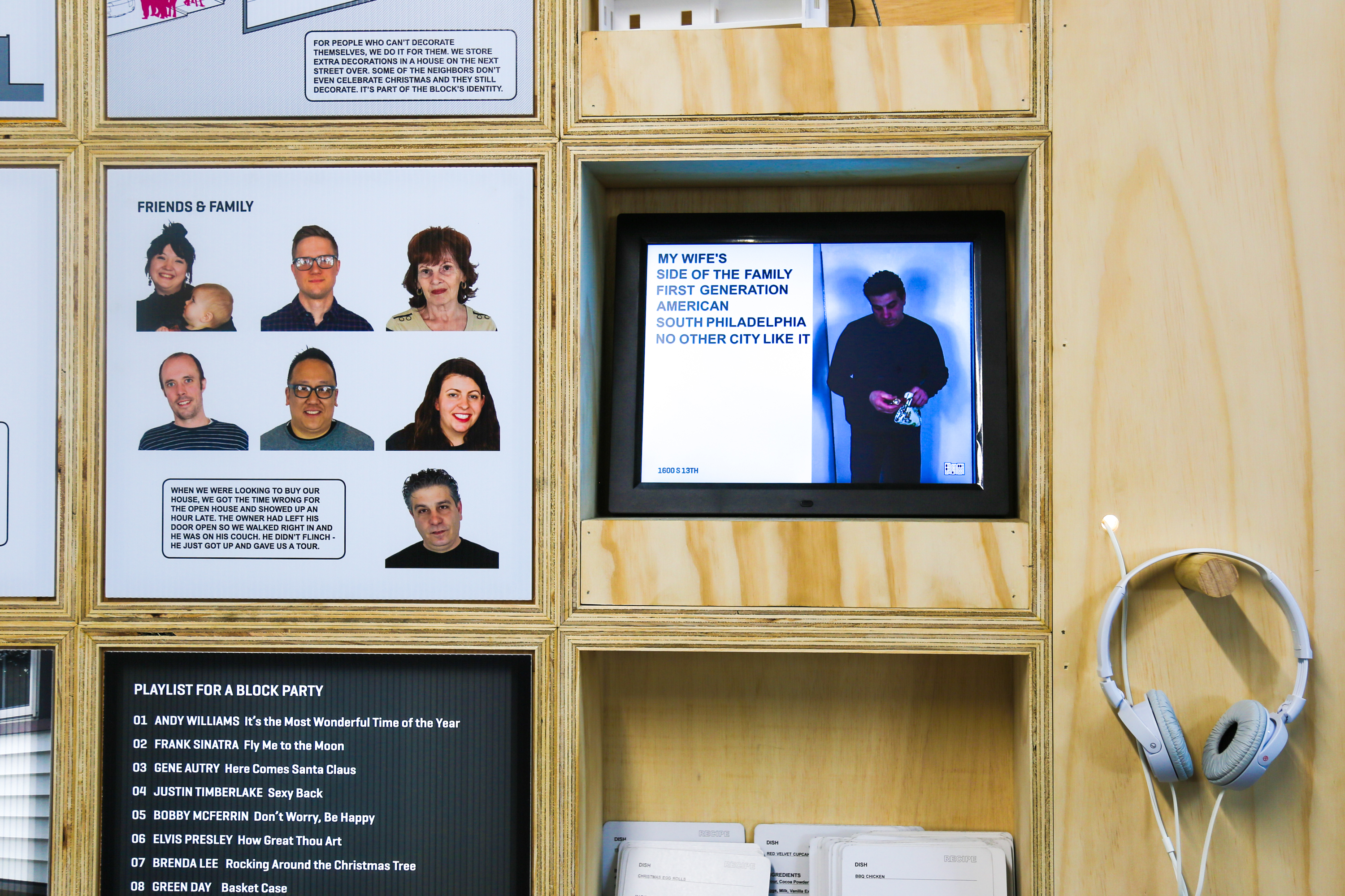 “Over the last year, ISA has hosted community block dinners throughout the city – documenting the neighborhoods and histories of the people who inhabit and shape Philadelphia’s urban fabric,” the project’s website reads. “Rowhouse Workshop is an interactive expression of these findings – a current snapshot of the unique personalities of rowhouse blocks in North, South, and West Philadelphia in the midst of a changing city. The exhibition leads visitors through a series of block installations, providing a window into the life of each of four participating rowhouse blocks through collectively curated songs, recipes, photos, and videos. A series of digital and physical media, including drawings, photographs, and objects offered by Rowhouse Workshop participants will be showcased in totems fabricated by local Philadelphia teenagers through fabrication partner Tiny WPA’s community-building program.”