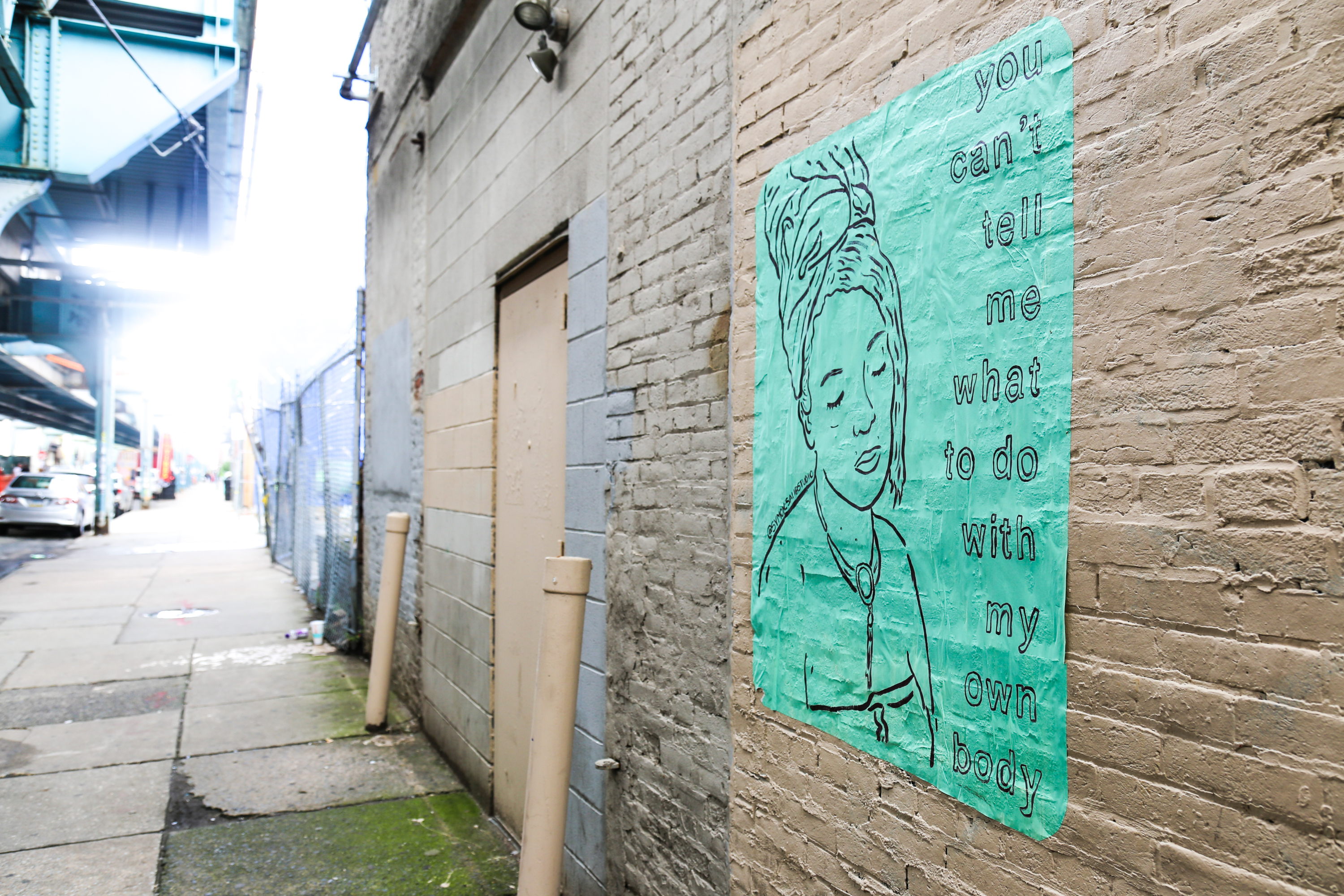 “You can’t tell me what to do with my own body,” reads a new wheatpase from Philly-based artist Symone Salib located on Front street at Girard avenue in Fishtown.