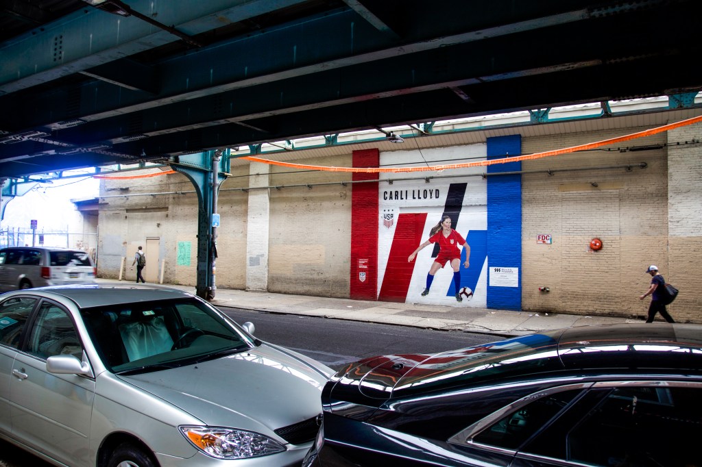 Nilé’s mural is to Carli Lloyd, a two-time Olympic gold medalist, 2015 FIFA Women’s World Cup champion, two-time FIFA Player of the Year, and a three-time Olympian. [Source: Wikipedia] And according to the U.S. Women’s National Soccer Team’s website, Nilé’s is just one of 12 total murals created by women all around the United States, each honoring a different player or players.