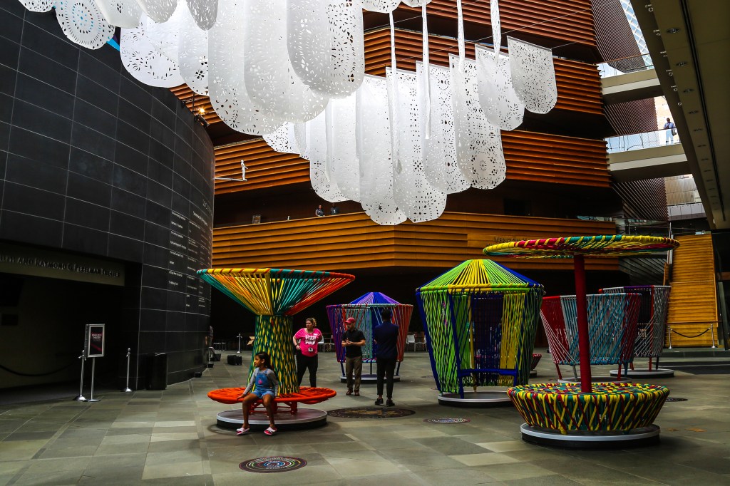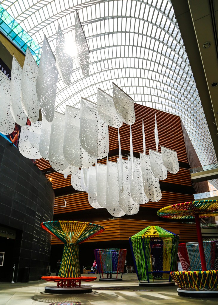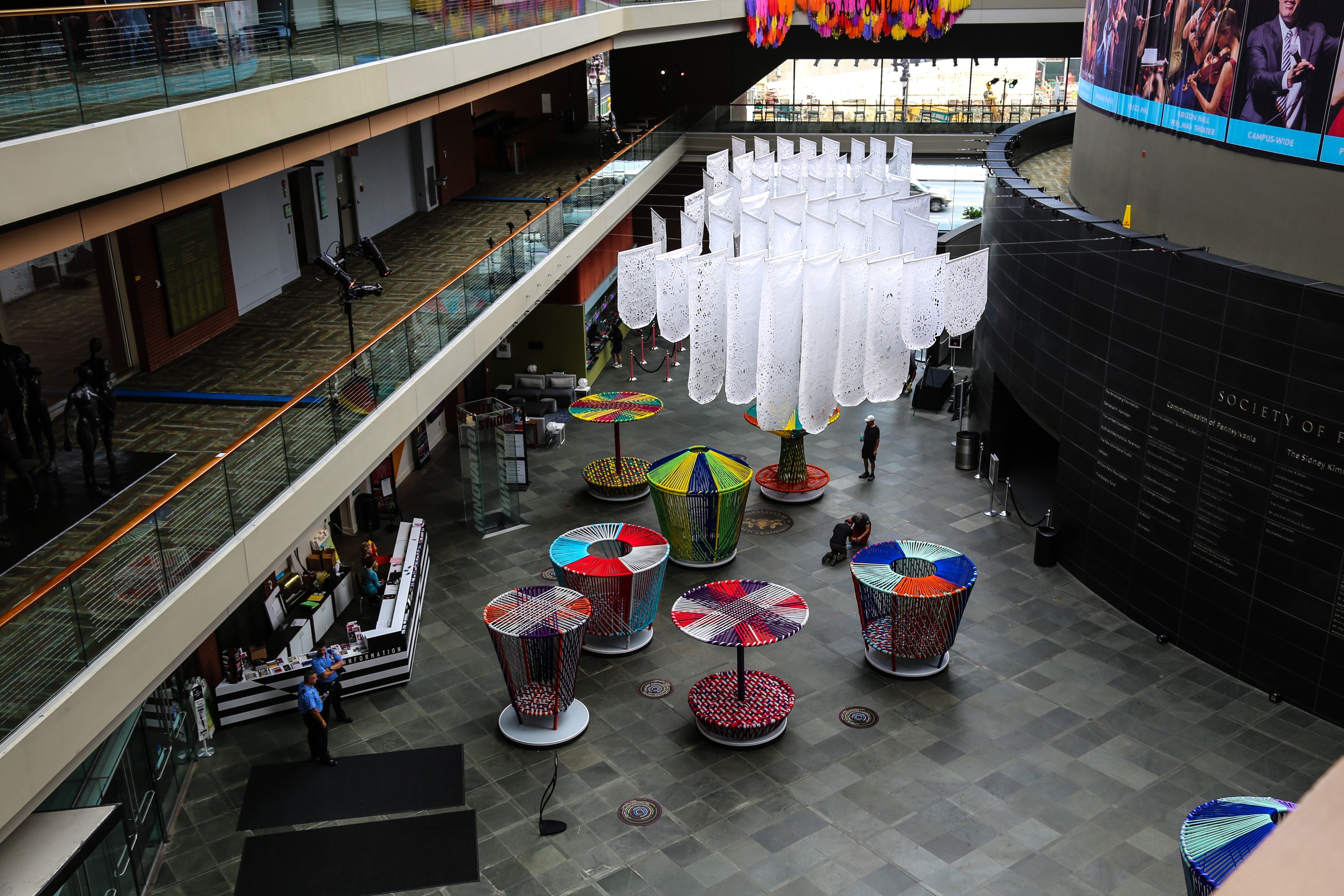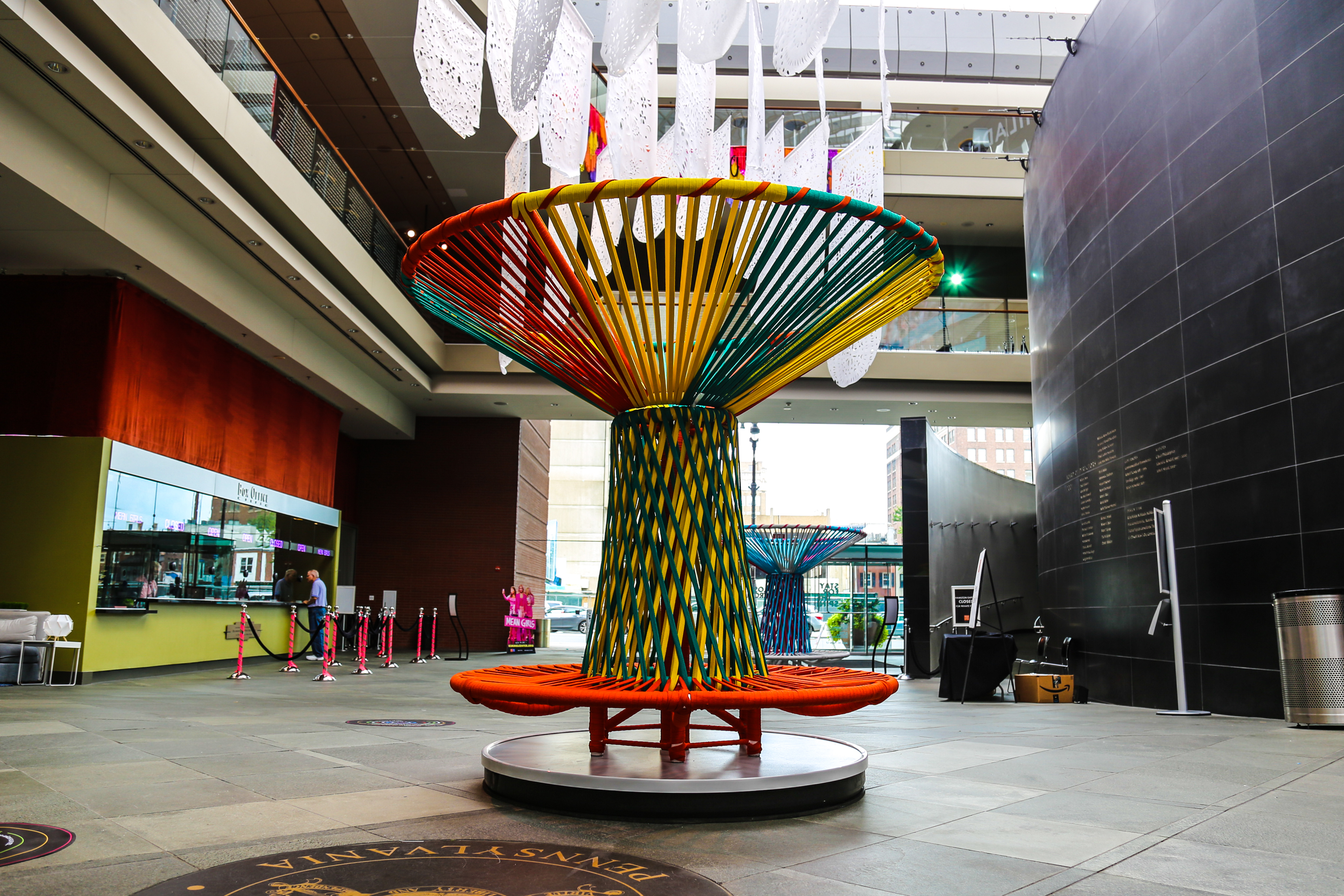 You can see the pair of artist installations for free now through November 17, 2019 any day or time the Kimmel Center is open. If you didn’t know, the Kimmel Center’s indoor plaza is a quasi public space! You can walk through there, check out the various visual art installation they usually have, sit at one of their tables to work or meet with friends, you can even use their bathrooms.