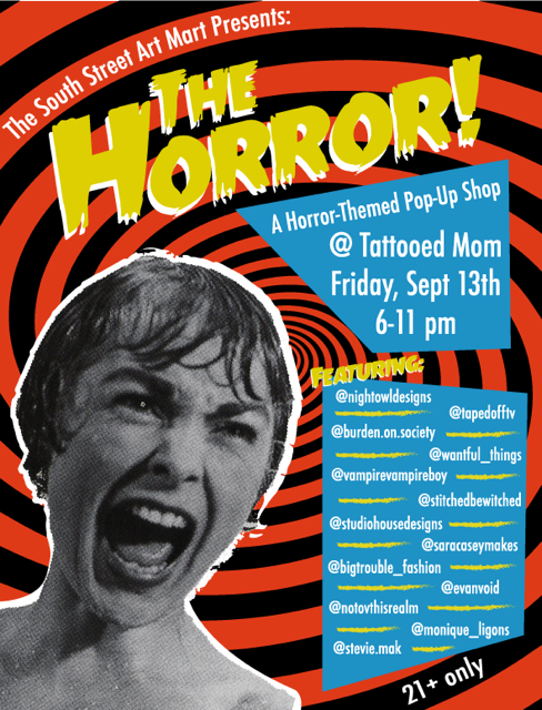 PHILLY: Join Tattooed Mom’s for The Horror! A Friday the 13th Group Art Show! this Friday, September 13 starting at 6pm!