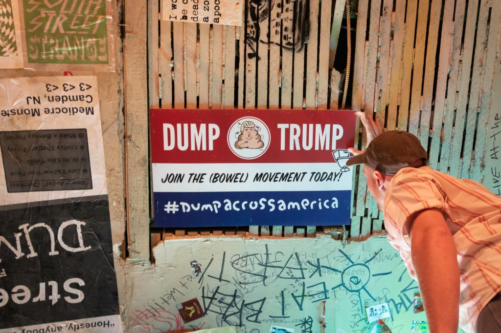 That’s the thing that’s always funny to me. Like even today, I go out, and I feel so self-conscious, like I’m doing the most criminal thing, putting this sticker up on this sign, waiting for the police to come and grab me and throw me against a wall. Then I put it up and I’m like why am I so nervous about this? This is a sticker! What are they gonna do, tell me to tear it down? Haha!