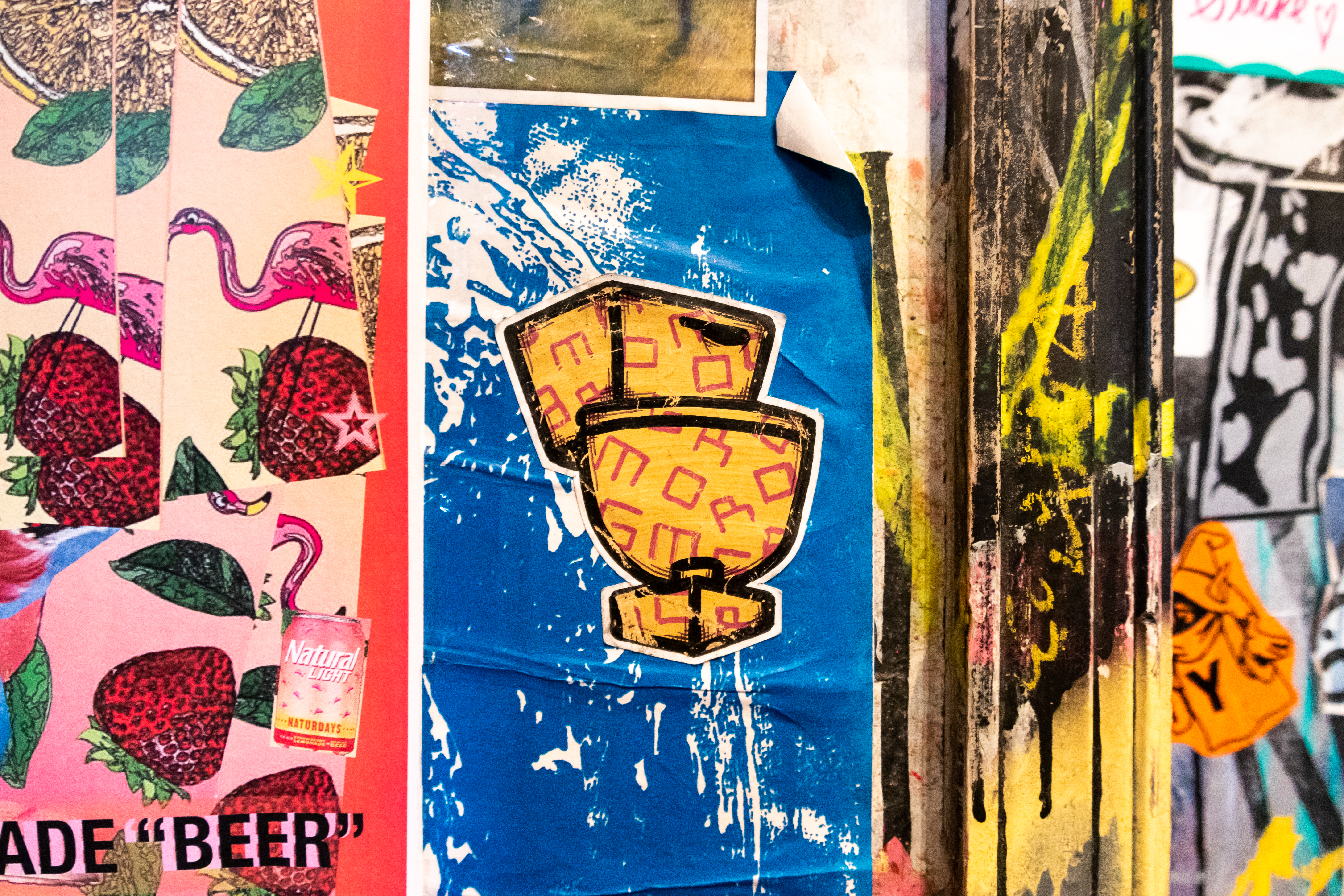 Every sticker artist to some extent will touch on the idea of the scavenger hunt. Not everyone’s going to notice it. Most people don’t. But there’s a community of people who produce and a community of people who enjoy stickers, who look for them, and it’s fun! It’s fun to know that that person was there. That part of it, to me, is really kinda special. When you see stickers that are really old and know that in 2006 this person was there. It’s an amazing way of preserving an insignificant history of someone’s existence.