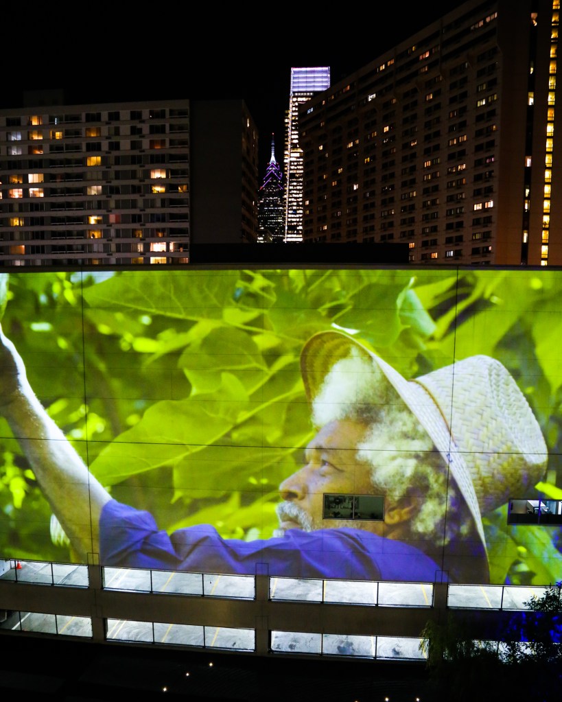 Located at 465 North 18th street, the project includes building-sized nighttime video projections featuring an episodic series of short films and a garden/installation that references the karesansui (Japanese dry landscape garden) in what will eventually be the future Phase III of the Rail Park… This Sunday (October 20) is actually the last day to see this brilliant piece of public art, so don’t miss it if you can!
