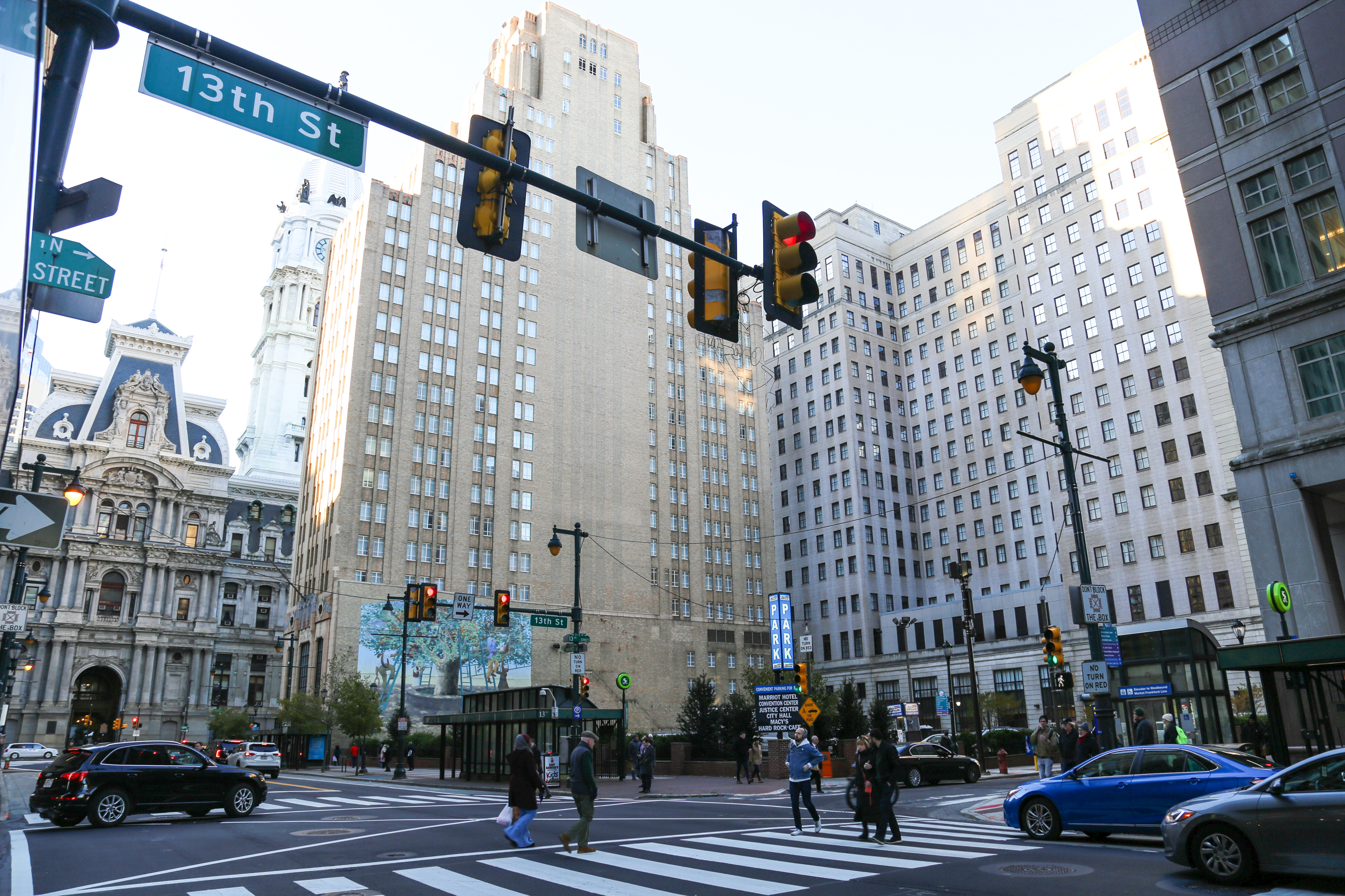 Depicting a wide-eyed heart shaped figure looking through a telescope with its fingers crossed, Reed’s 13th and Market installation could symbolize any number of things. I think I see it as a hope for kindness among strangers navigating the streets, the city, and their lives.