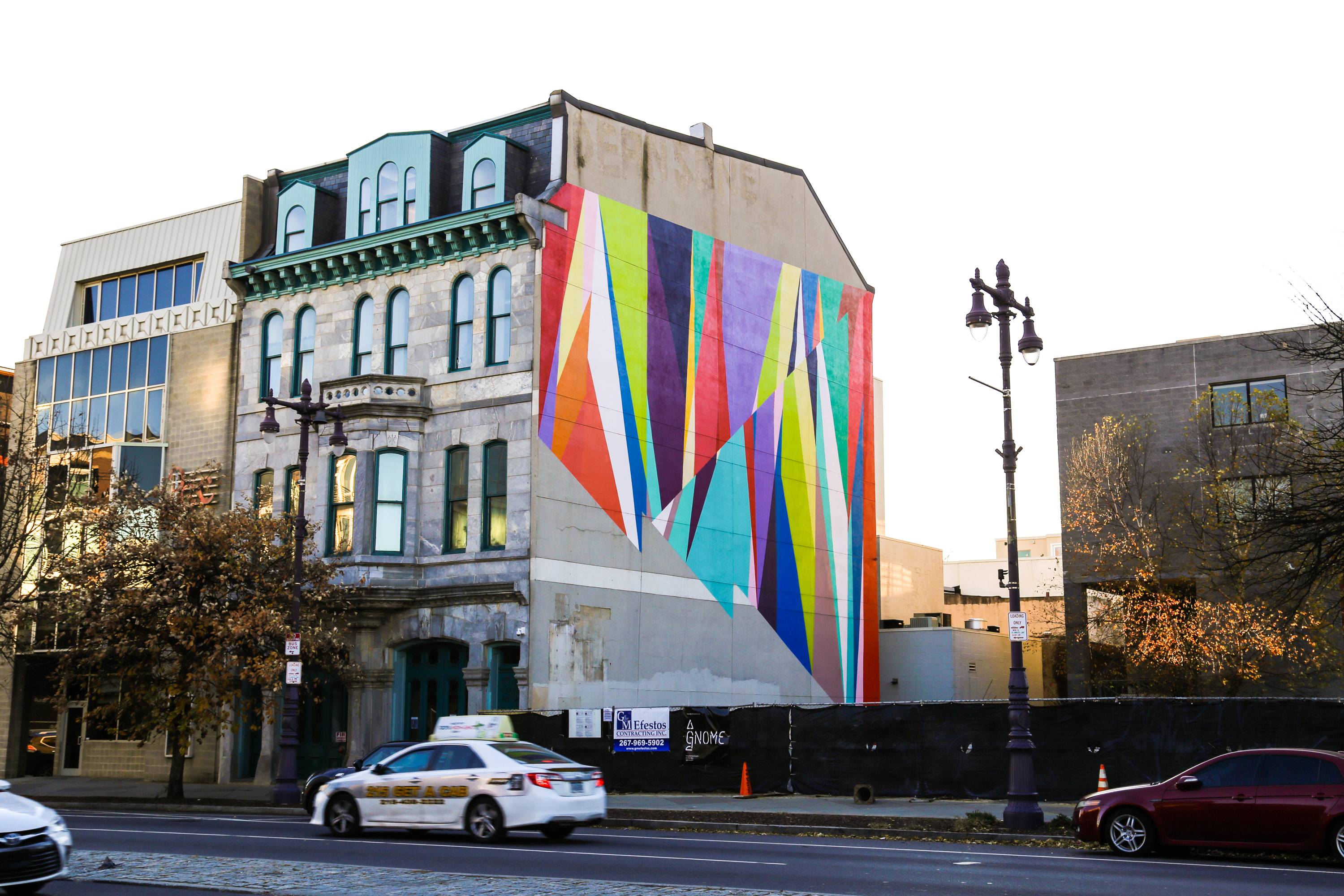 This was one of my favorites because South Broad Street (and South Philly generally) has a LOT of very collage-y figurative murals; murals to famous musicians and local sports teams and even other artists, which are all well and good. But I always found Odili’s abstract mural a refreshing break from that standard.