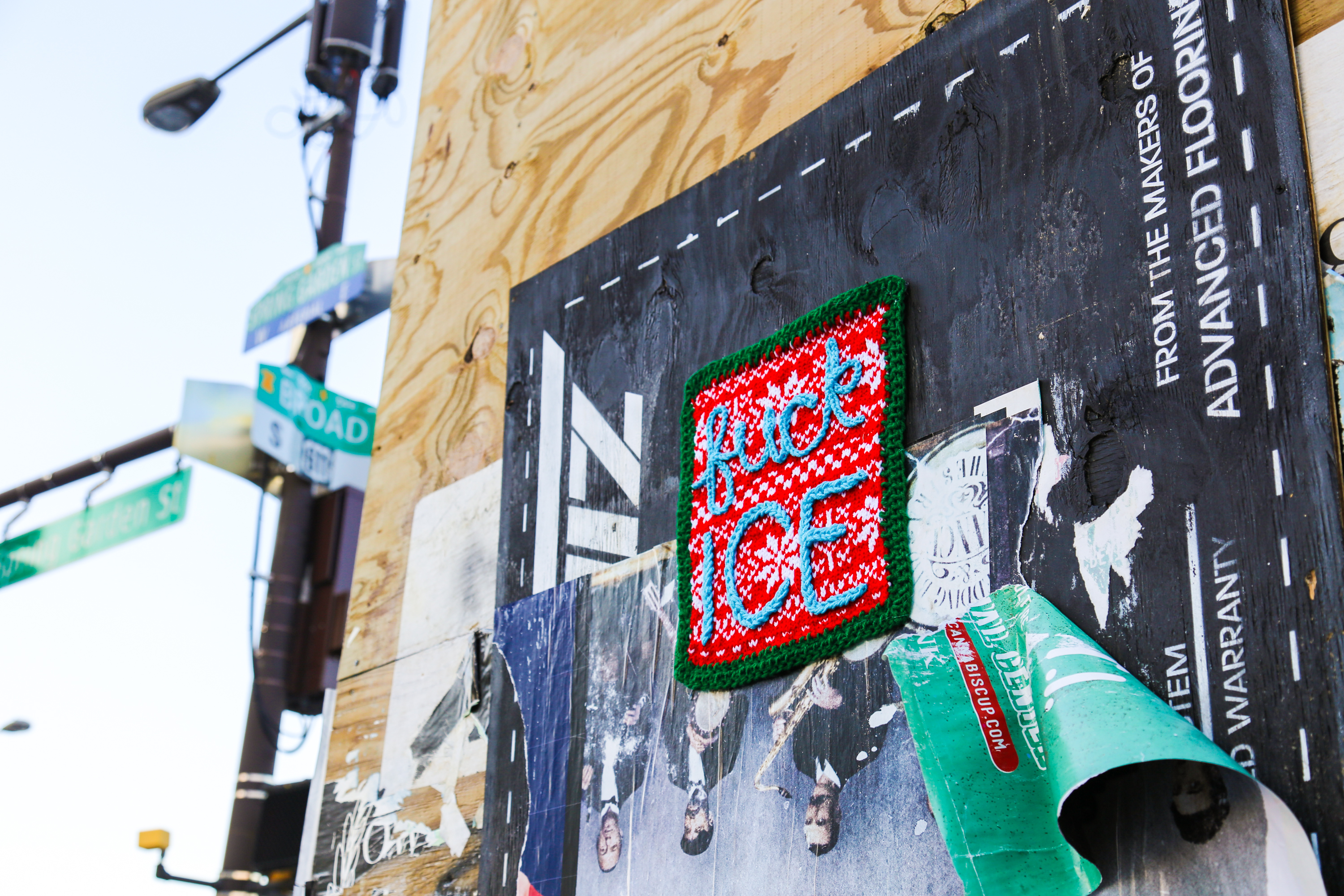 Love this “Fuck ICE” yarnbomb from legendary Philly street artist Ishknits, found at Broad and Spring Garden Streets!