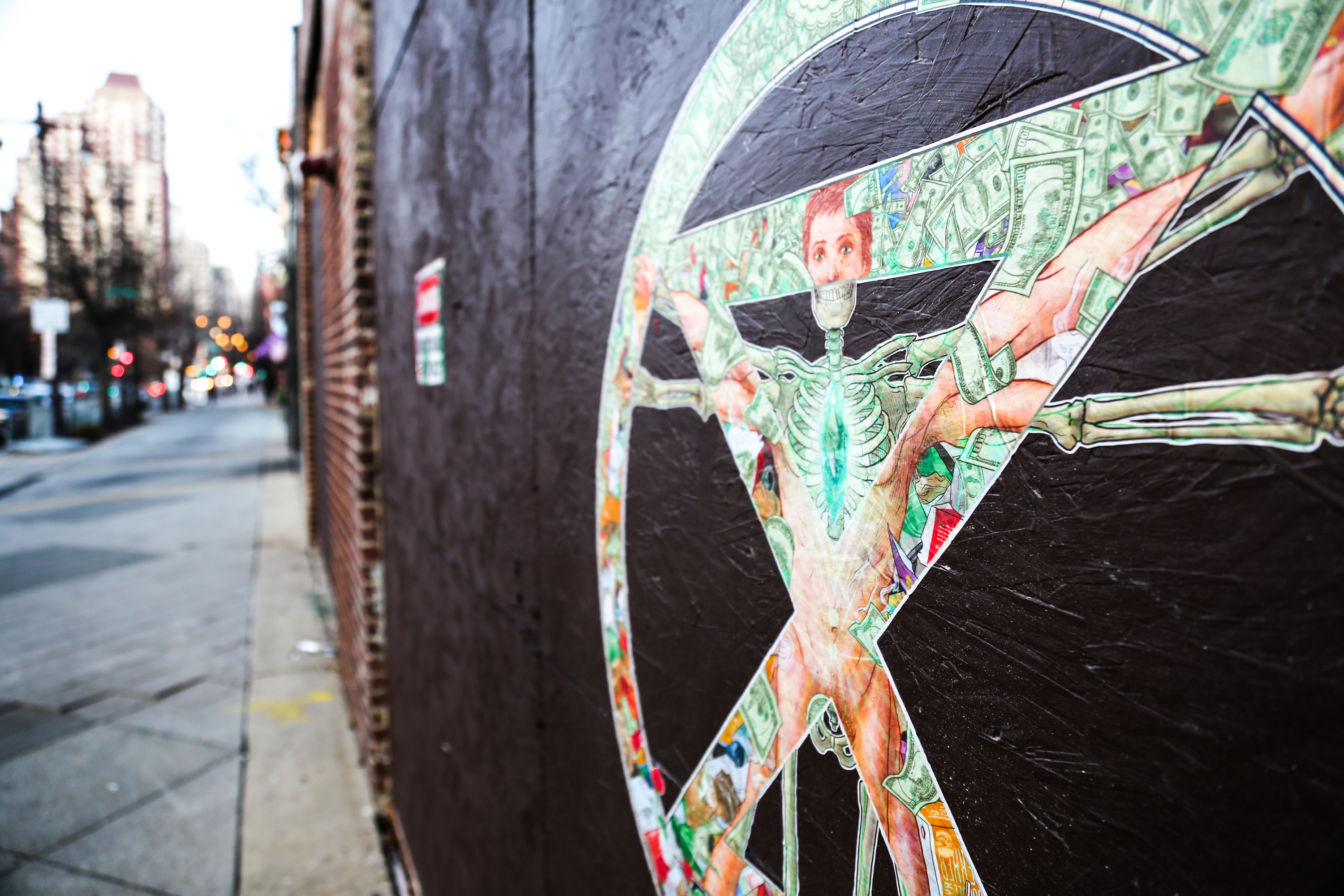 In love with this new wheatpaste from longtime Philly-based street artist Doug Nox (aka Harleqvin), located on Broad Street at Fitzwater Street in South Philly!