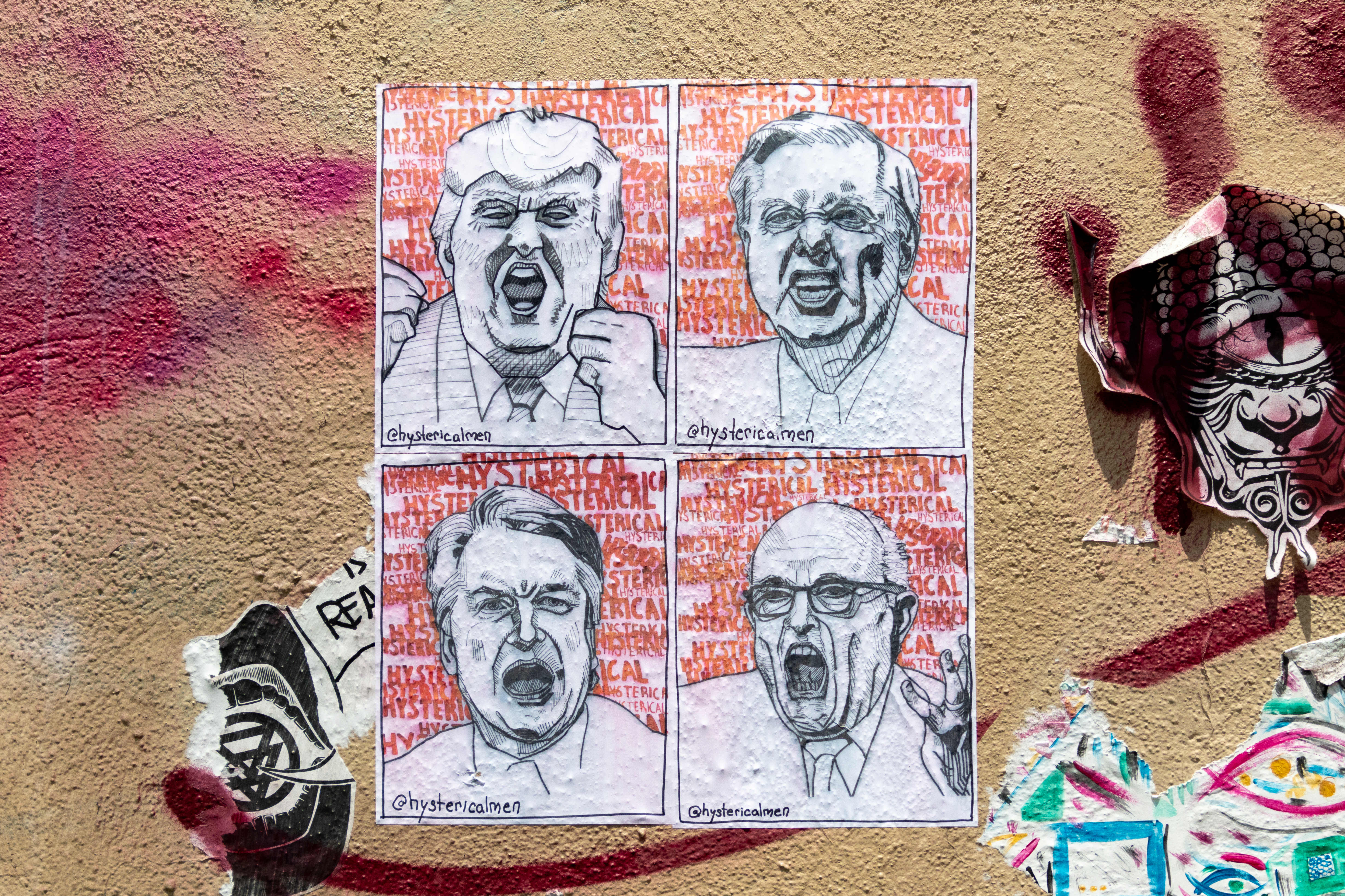 The anger that fuels street art newcomer Hysterical Men is rooted in gender inequality, social injustice, and congressional incompetence—in other words: politics. While many artists began incorporating political messages into their work after the 2016 election, Hysterical has built her entire brand around candid political commentary. Focusing mostly on hand-drawn portraits of members of Congress and other political operatives, I’d say she’s currently the most political street artist working in Philadelphia.