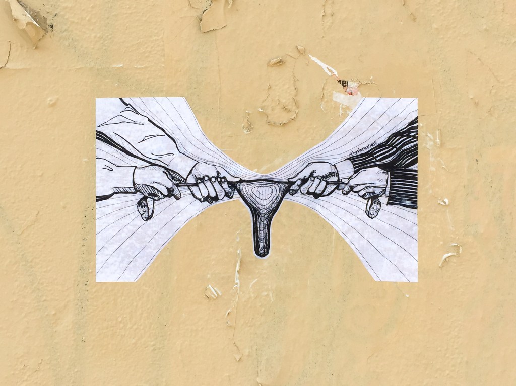 SD: One piece of yours that has really stuck with me is your image of an ovary being used as the rope in a tug-of-war. Were you, like, a political cartoonist in a former life or something? These razor sharp concepts—where do they come from?
