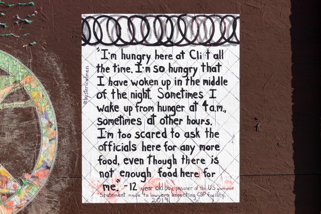 You know what it was? I was listening to an interview with Warren Binford, the lawyer who started Project Amplify. She was one of the people who were the first to go in and inspect these camps, and she was so horrified by what she saw that she took sworn statements from these children with translators—and they continue to take sworn statements—and she just wanted the public to have access to these. I was listening to an interview with her and she said “these words should be everywhere.” And I was just like I can try to do that. I feel like there’s so much power in the words themselves that I didn’t want to do too much artistically to detract from them, but it’s really difficult to sit with those quotes everyday for a long period of time, so after I had worked on it for a while, I had to take a break, because I was really burnt out. So I don’t know how she does it. I’m definitely a firm believer in taking breaks so you can keep fighting the good fight, because we’re in this for the long haul.