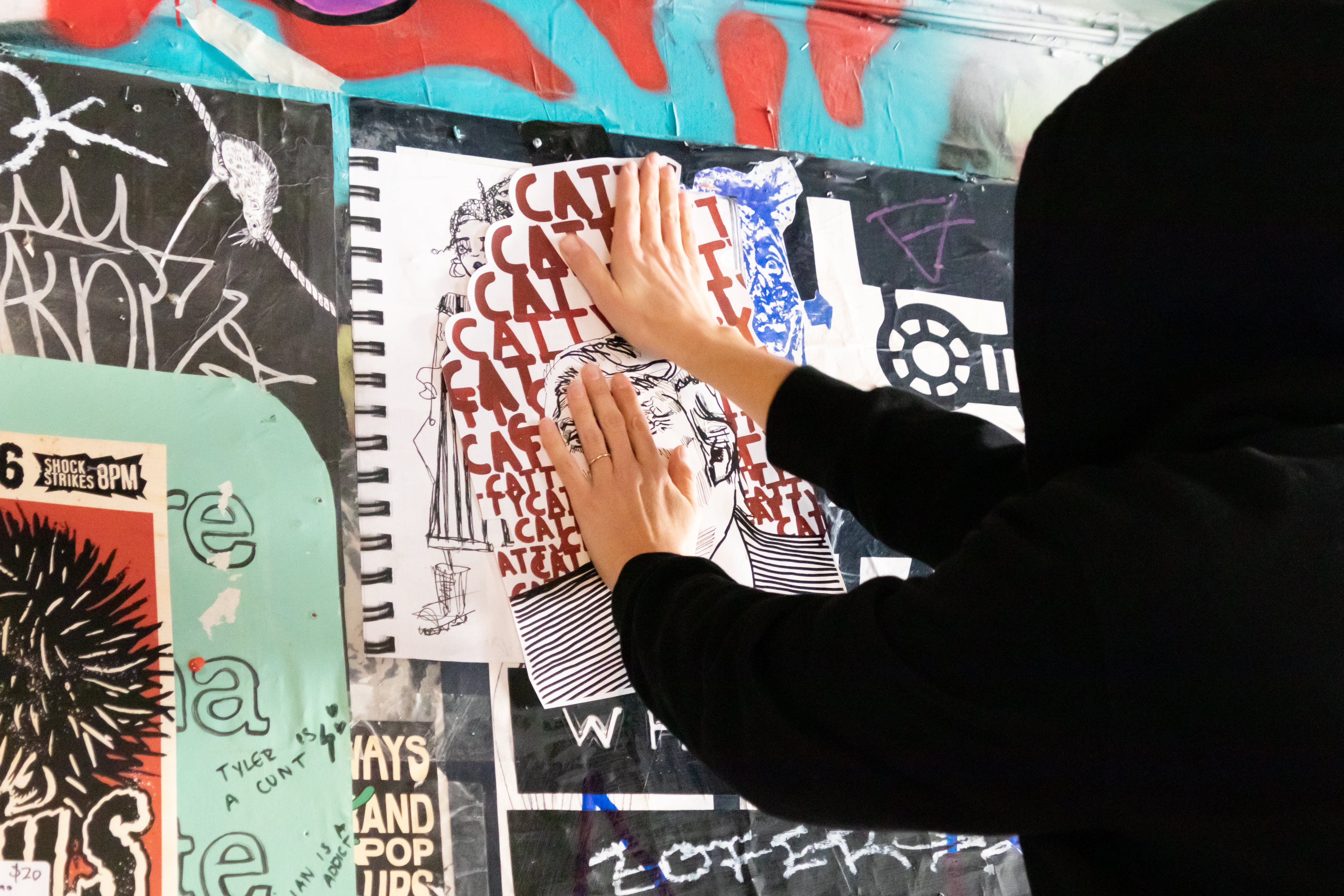 But I made my own wheatpaste, and I was just drawing them with sharpies, and hand doing the text—which is insane because I’m not great with text as an artist. And then I just started copying them on a photocopier and putting them up around Symone’s piece as I would get them done, little by little over the course of a week.