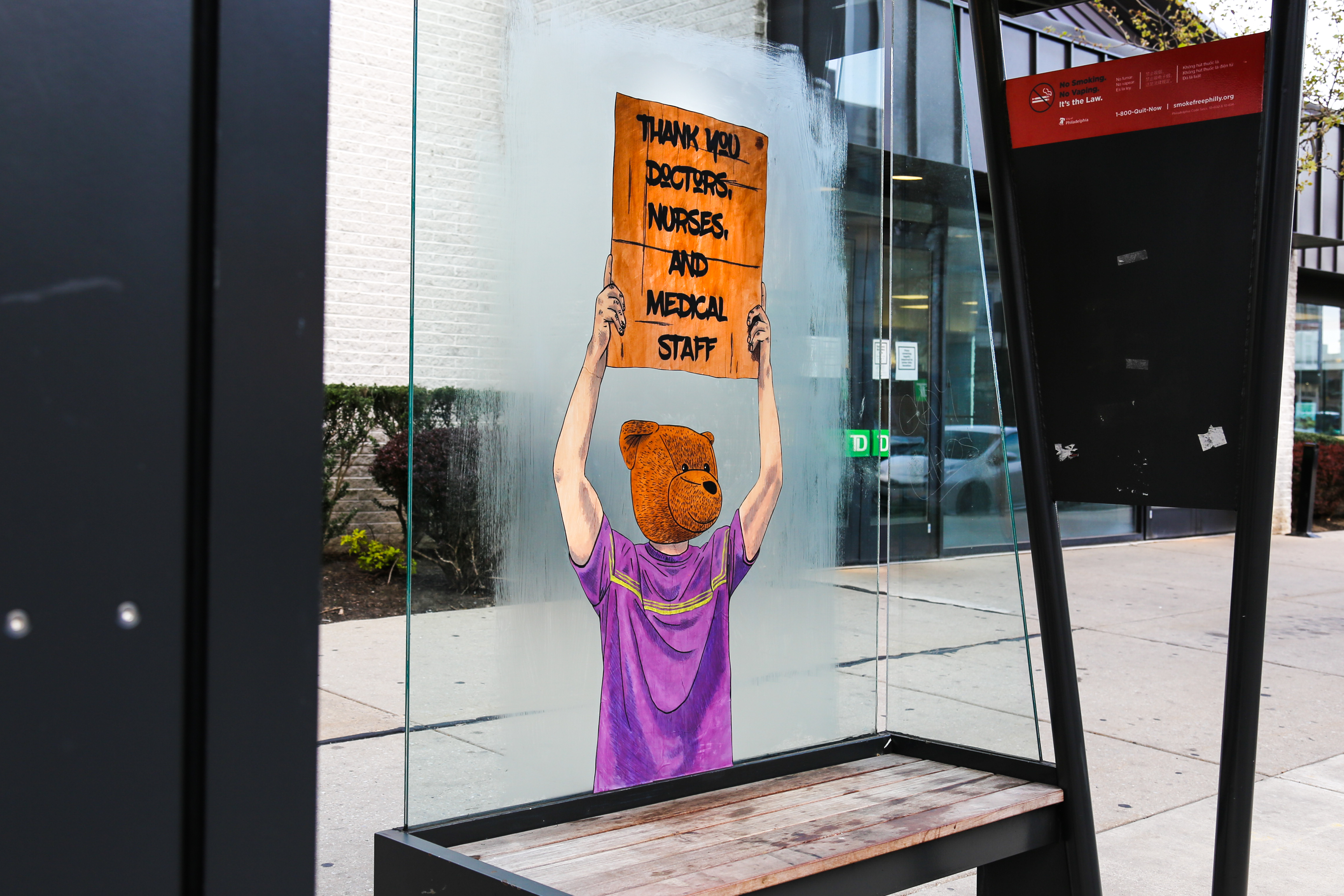 A new series of wheatpastes by Philly-area street artist Sean 9 Lugo thanks healthcare workers and reminds us that we’re all in this together!