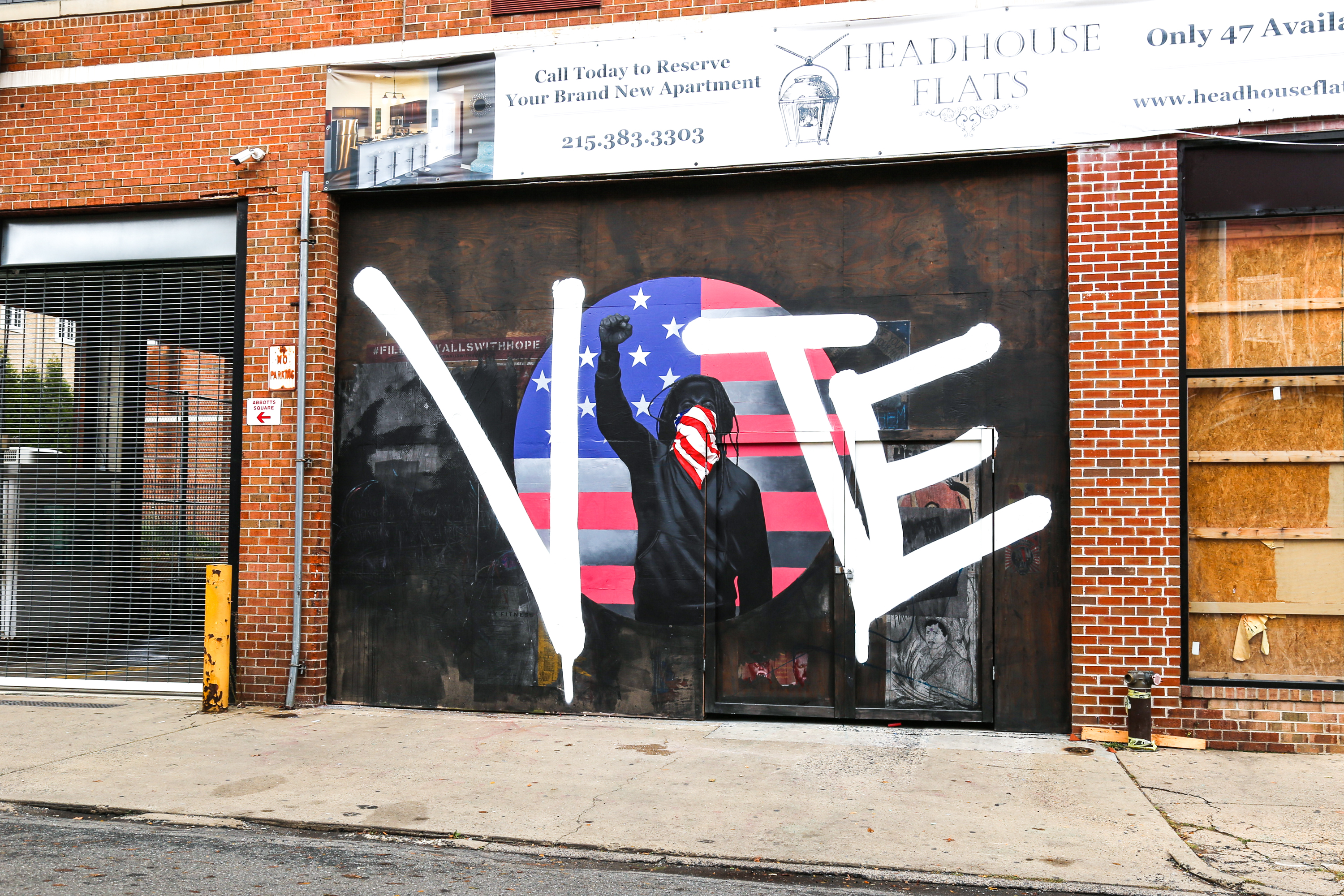 As we go through the final days of the 2020 Election this week, two new get-out-the-vote murals painted by legendary New York-based artist FAUST have popped up along South Street!