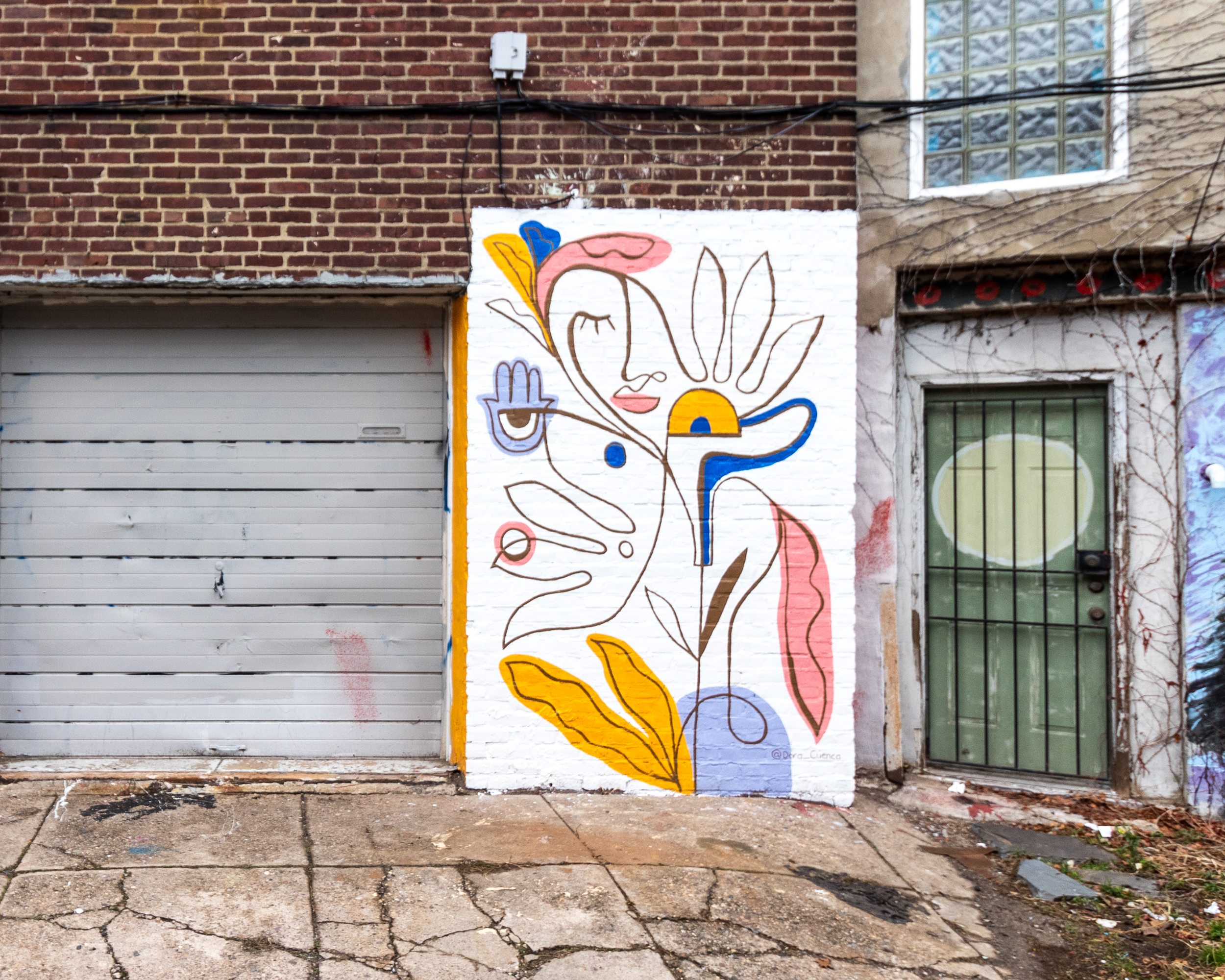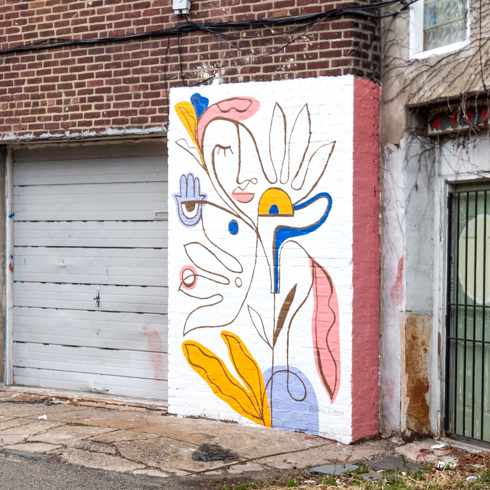 Over FaceTime, Dora chose a wall belonging to Val and Marcy, the owner of Bud & Marilyn’s, who had previously given the Percy Street committee blanket permission to paint on any of their three buildings on the street. They also enthusiastically approved the mural and proposal idea.