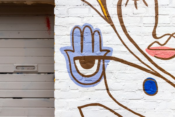 After completing her initial draft design, Dora felt that it was missing something. After some discussion with Jonah, she reworked it to include a face and a hamsa, a symbol that, in Judaism, represents the hand of God or the hand of Miriam (the sister of Moses and Aron). The symbol holds particular meaning for Danielle, who runs a mosaic art business called HamsaMade.