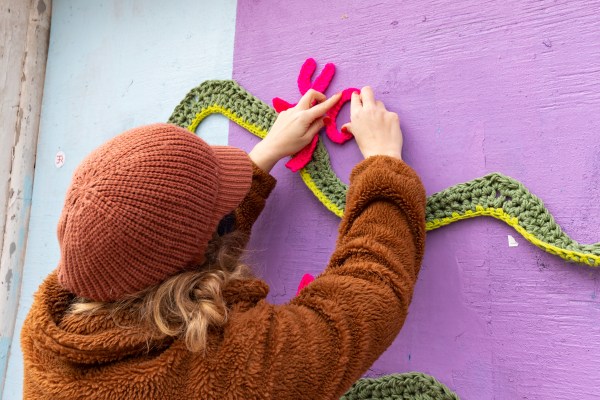 So on February 10th, Nicole crocheted Jonah’s words onto Percy Street, and Danielle “counterproposed” to him later that day. “Doing a love letter theme around Valentine’s Day seemed like a perfect declaration of love not just to my partner, but to South Philly,” she said.